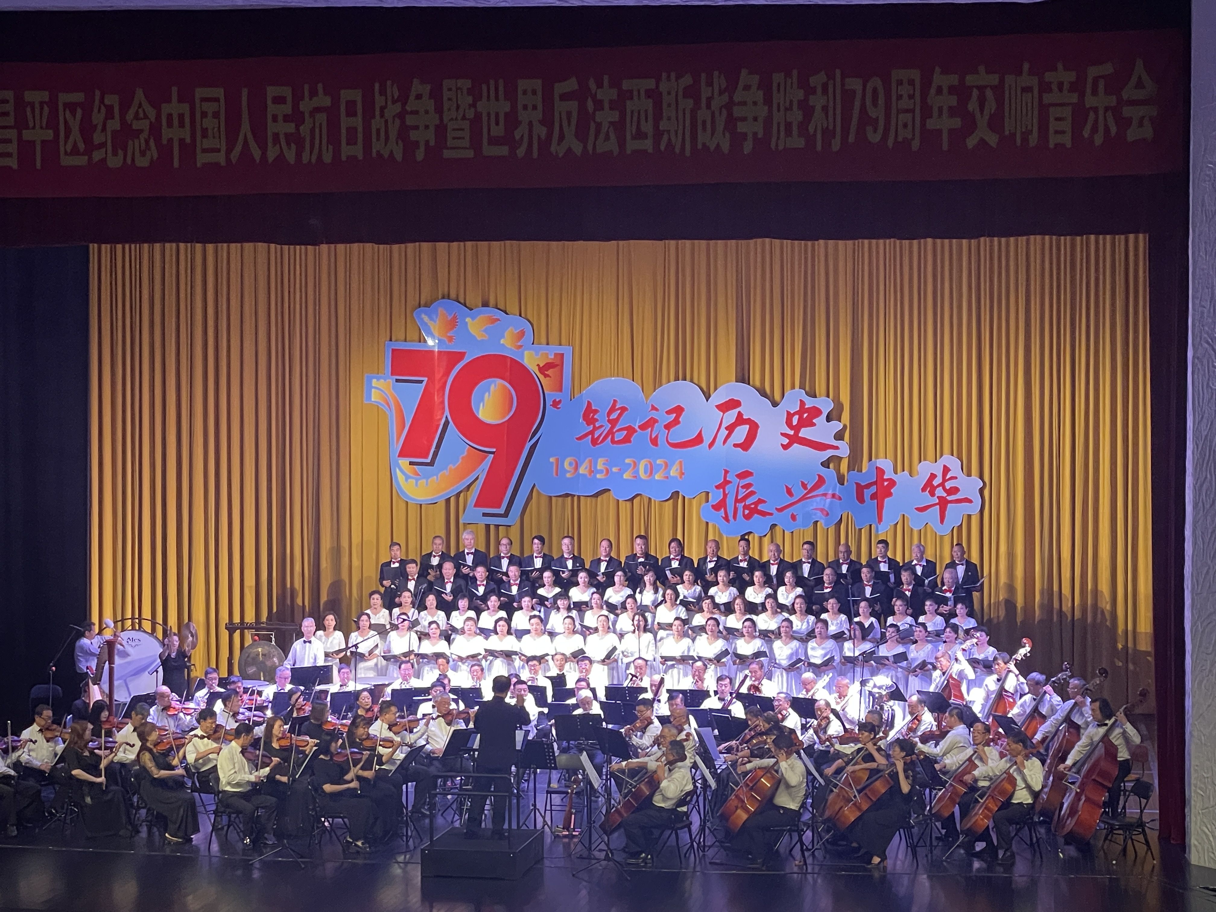 新京报讯(记者田杰雄)9月3日,中国人民抗日战争胜利纪念日,昌平区在回龙观文化艺术中心举办交响合唱音乐会,来自回天地区的160余名居民参与演出。