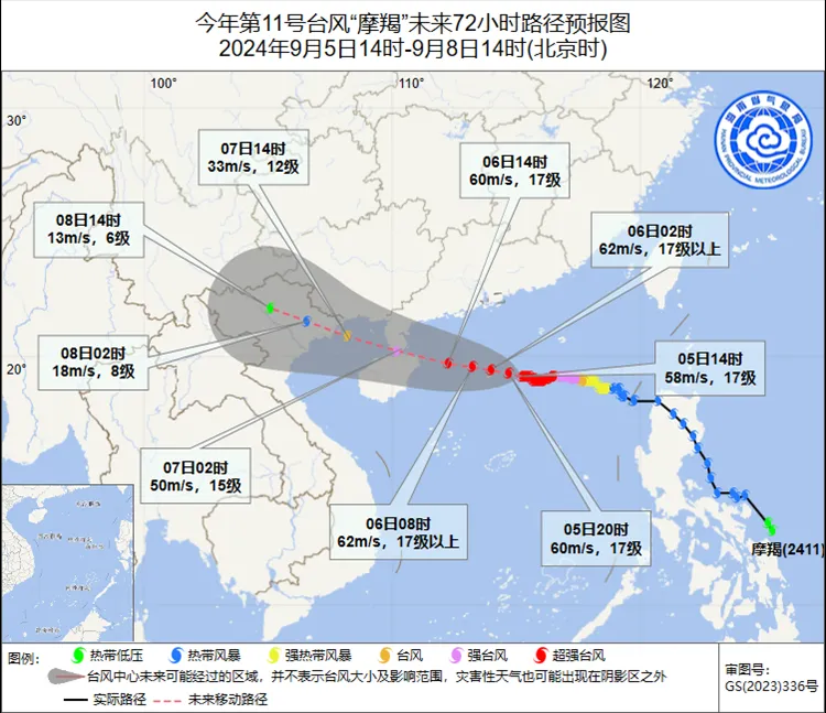 应急管理部网站消息,今年第11号台风“摩羯”9月5日14时中心位于广东省湛江市徐闻县东偏南方向约540公里的海面上,中心附近最大风力17级(58米每秒,超强台风级)。预计台风“摩羯”将以每小时10~15公里的速度向西偏北方向移动,强度变化不大,将于6日下午至夜间在海南琼海到广东电白一带沿海登陆(超强台风级,16~17级,52~58米每秒),7日凌晨移入北部湾海面。受其影响,5日至8日,广东南部、海南岛等有暴雨到大暴雨,广东西南部、海南岛等地部分地区特大暴雨,局地累计雨量可达600毫米以上、单日雨量可能达到500毫米左右或以上,具有一定极端性。