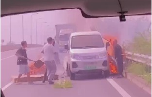 “我去帮帮他。”肖班全也停在路边,安抚住车内的妻儿后,毫不犹豫地拿起车内的灭火器冲过去协助。不多时,另一名过路司机庞展展也提着两瓶灭火器跑来灭火,三人分工合作,努力控制火势。