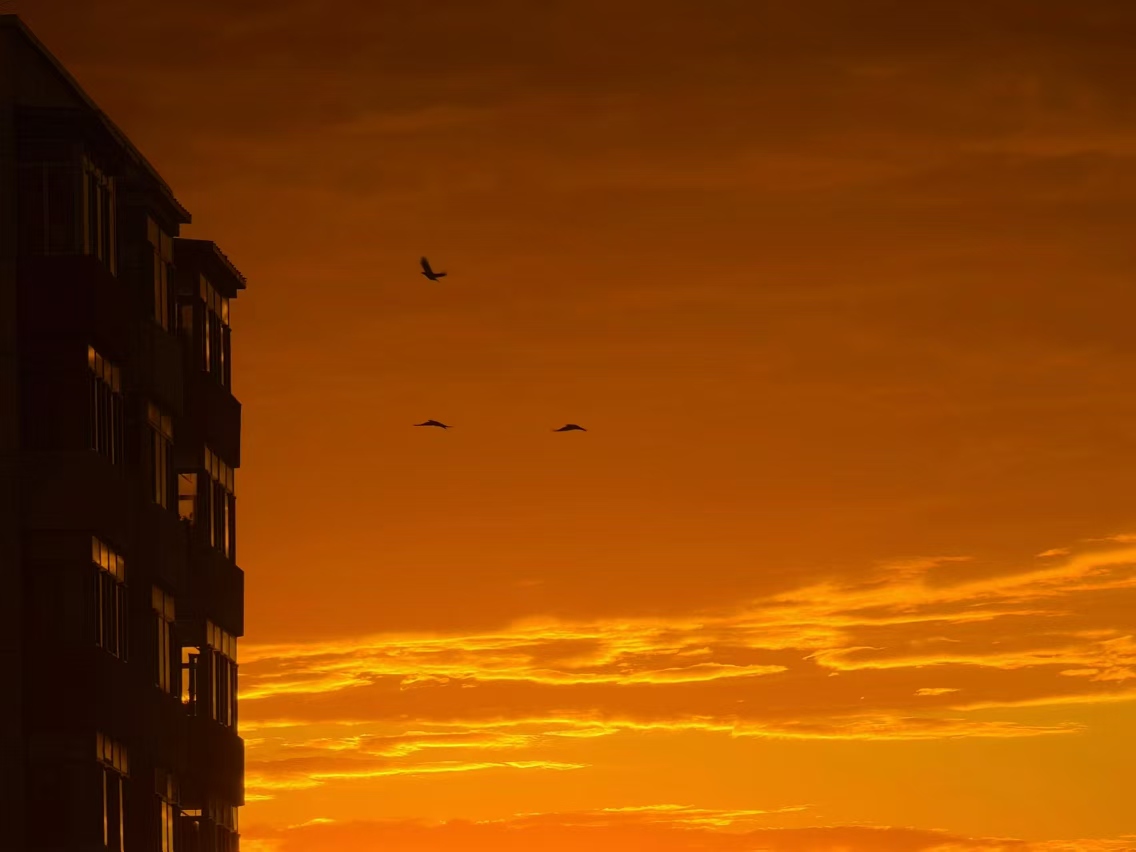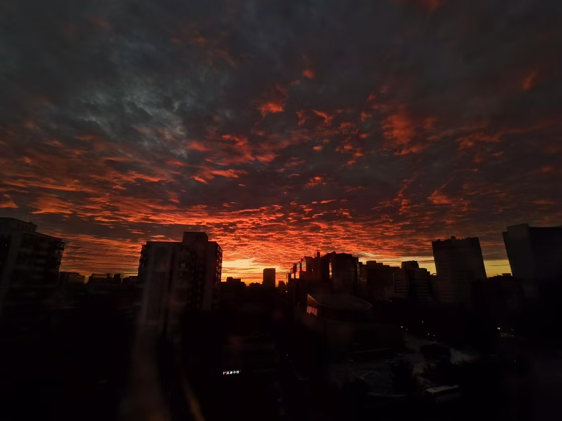 城市被火烧云覆盖。