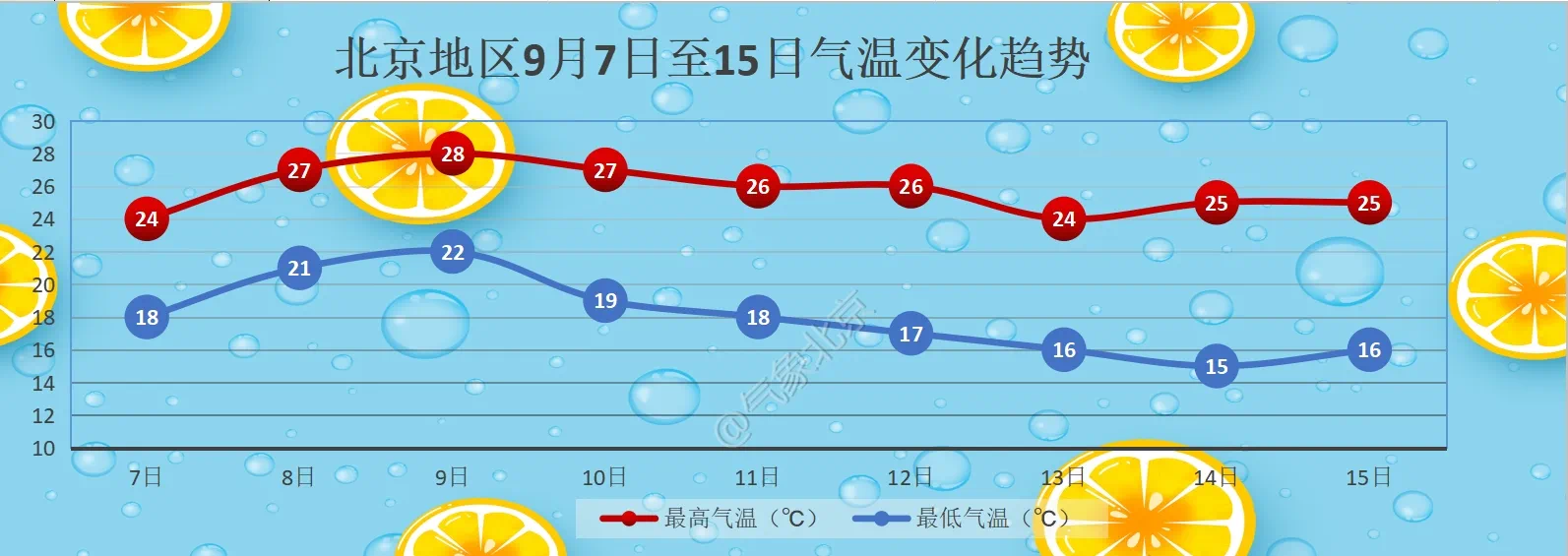 北京地区9月7日至15日气温变化趋势图。图源:气象北京