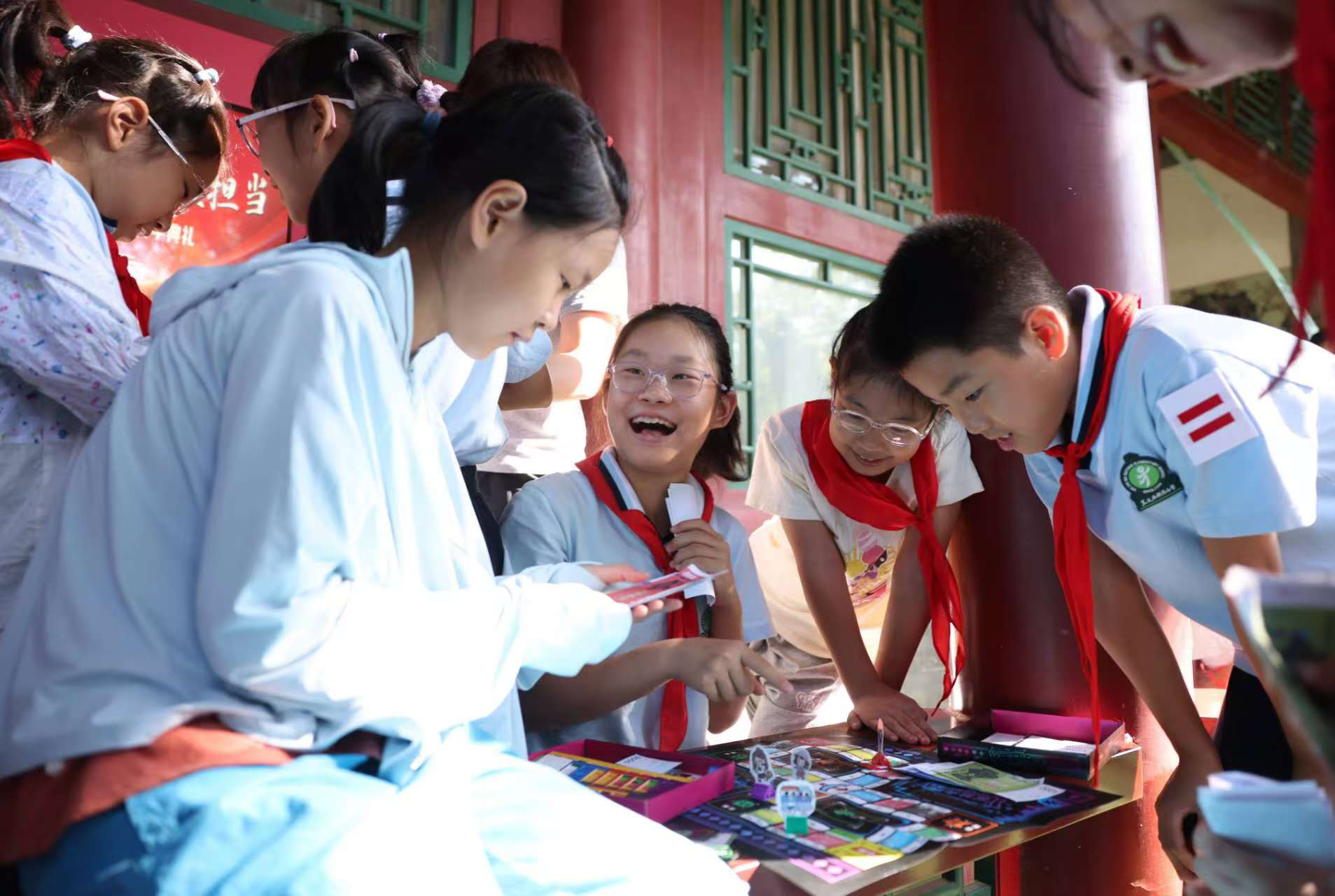 小学生在玩“大富翁”游戏。