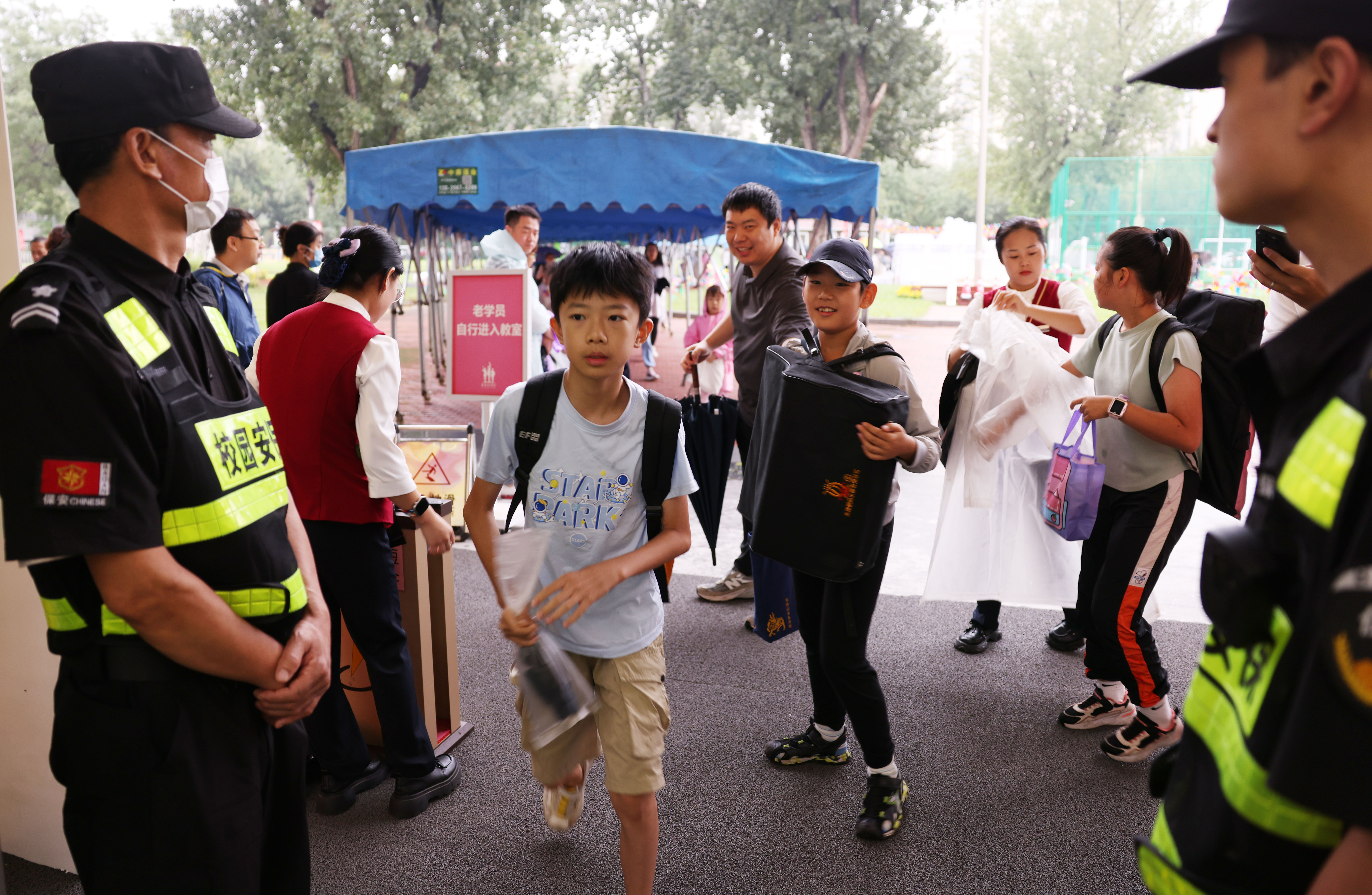 北京市少年宫学员们在细雨中迎来秋季新学期。新京报记者 李木易 摄