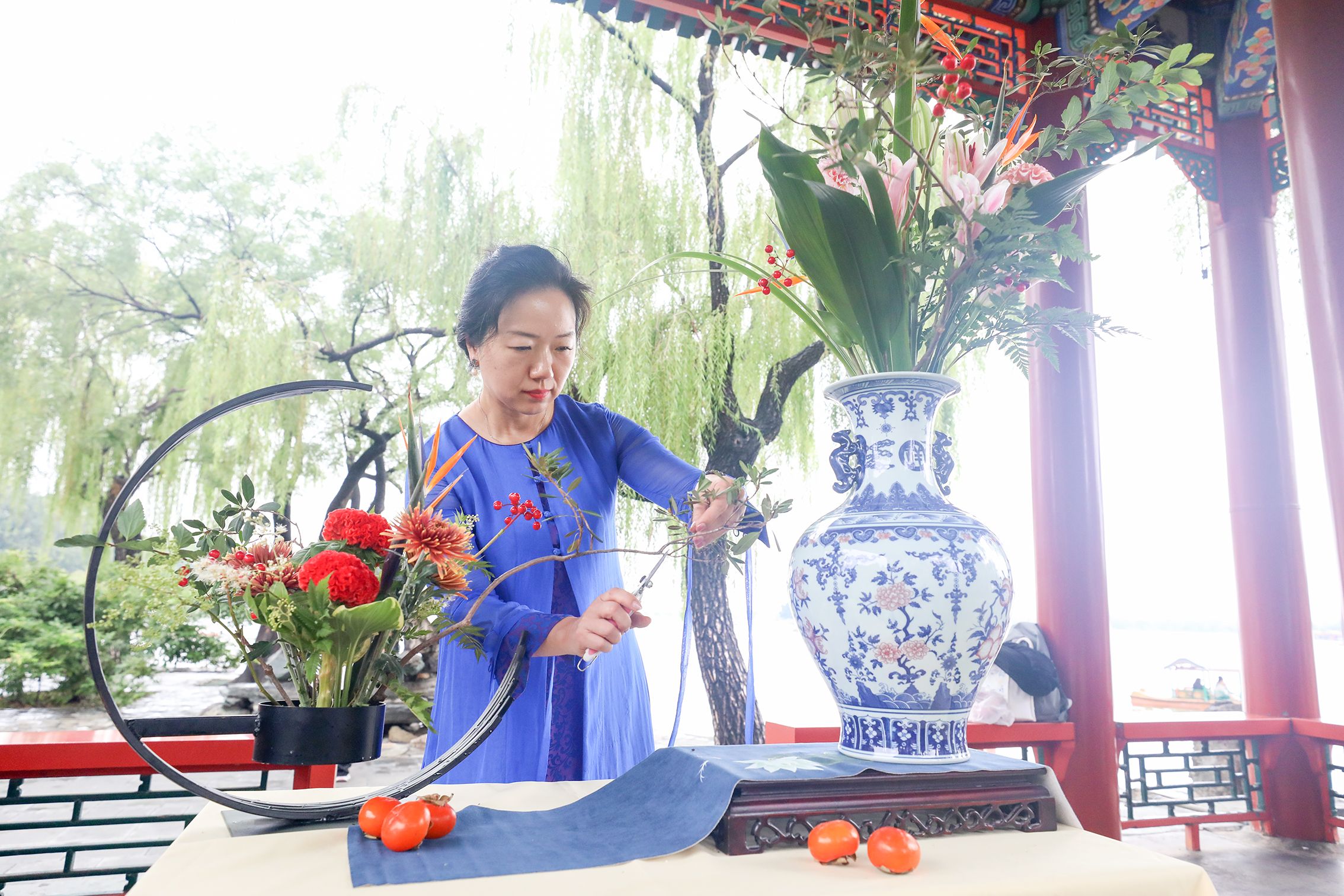 花艺师在颐和园进行中国传统插花艺术表演。何建勇 摄