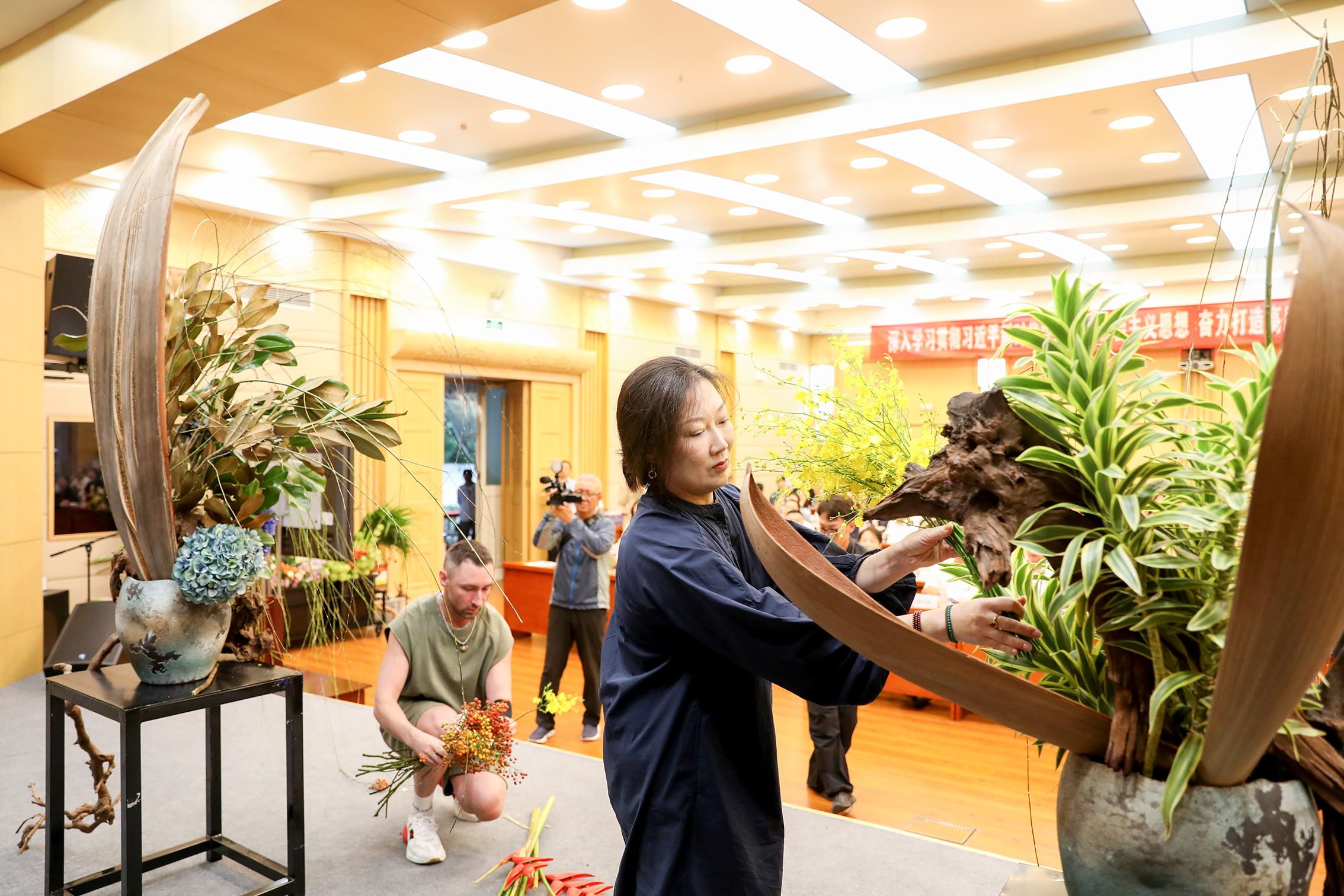 紧张激烈的花绽竞演观赏性强,展示了花艺师精湛的插花水平。何建勇 摄