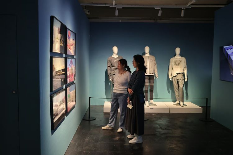 嘉宾观看服装设计作品。相关负责人表示,本次展览反映了新时代文化工作者的部分探索结果,也希望有更多的艺术家、设计师和文博机构,投身于这样的创造及展示活动。