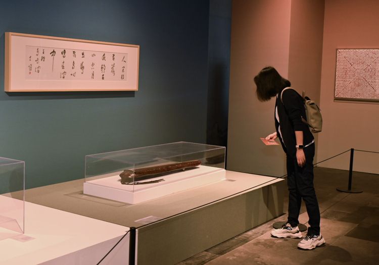 嘉宾观看展出的乐器和书画作品。恭王府博物馆与清华大学美术学院自2023年开展馆校合作以来,双方发挥各自资源优势,在传统文化研究、文化遗产保护、文化创意设计、对外文化交流等方面开展了多项合作,其中,“以传统生活之美”为核心的专题研究,已转化为展览、服饰、文创产品、数字产品等多项服务于国内外观众的合作成果。