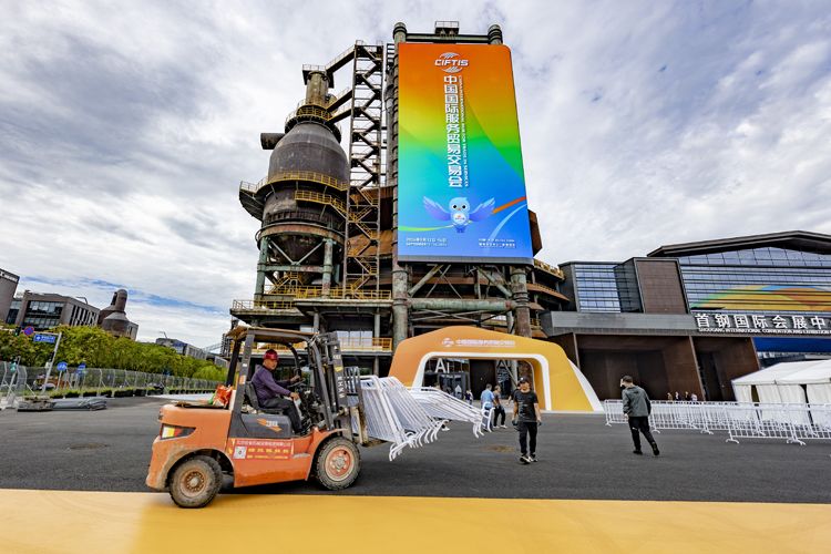 9月11日,2024年服贸会开幕倒计时一天,首钢园各主题展区的工作人员正在为游客体验项目做最后调试。9月12日至16日,2024年中国国际服务贸易交易会文旅服务专题将亮相首钢园,展区包括9号馆、10号馆、1号馆文旅展区和部分室外展区。