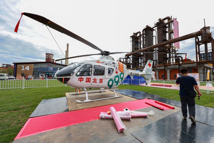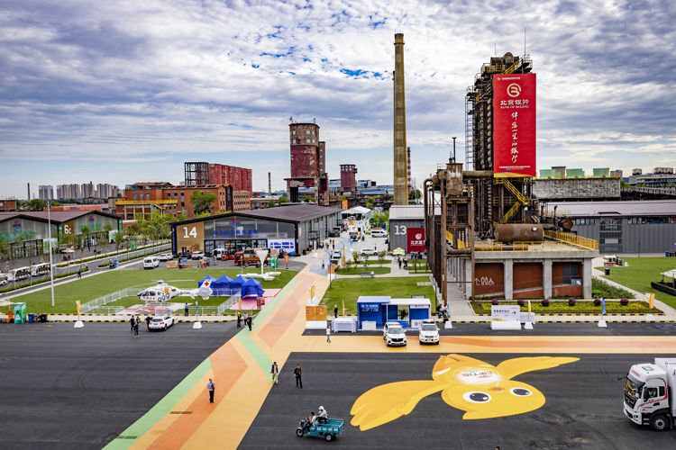 9月11日,首钢园,经改造后的首钢四高炉在本次服贸会中以首钢国际会展中心综合体的身份亮相。现代化展馆围绕四高炉分布组成首钢园服贸会4.0版园区。