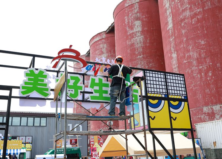 首钢园6号馆,卫生健康服务专题展馆,工作人员正在布展。