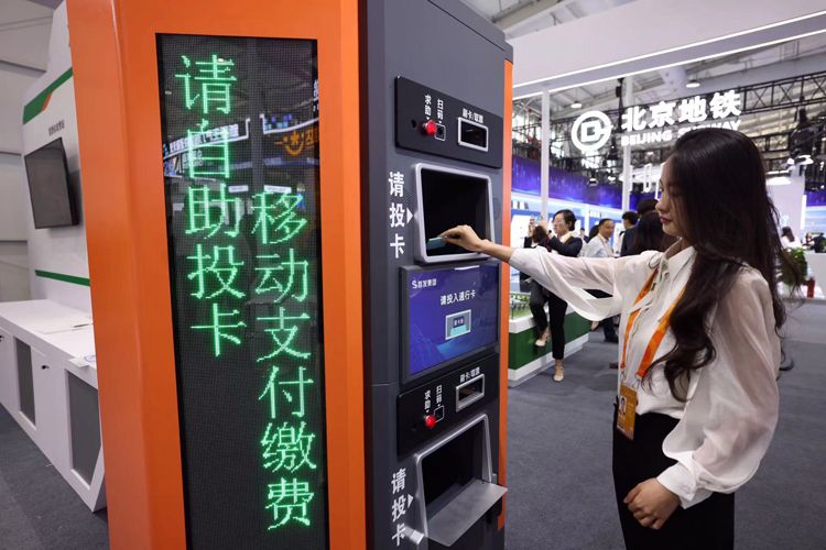 首发集团展示高速公路自助投卡缴费机。