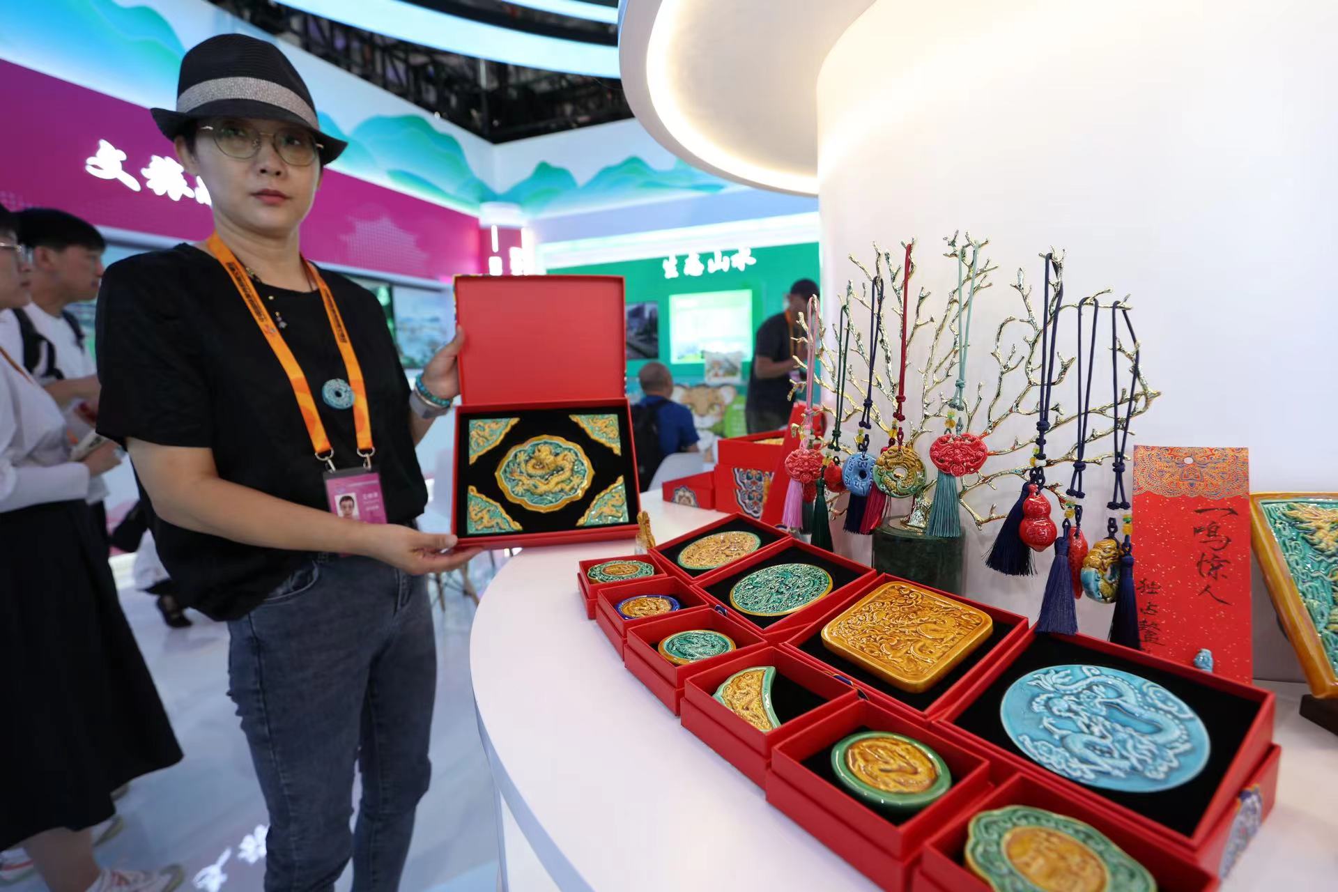 门头沟展区展出了琉璃文创产品。新京报记者 王飞 摄