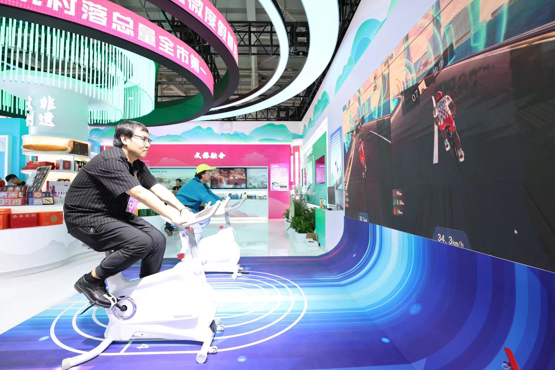 体验虚拟骑行。新京报记者 王飞 摄