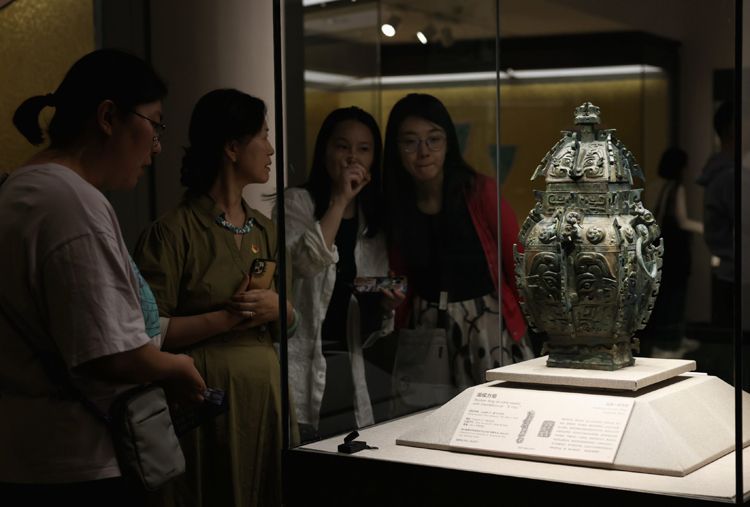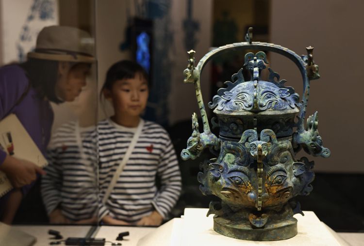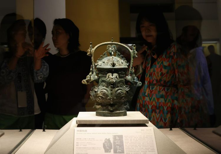 观众观看神面纹卣。