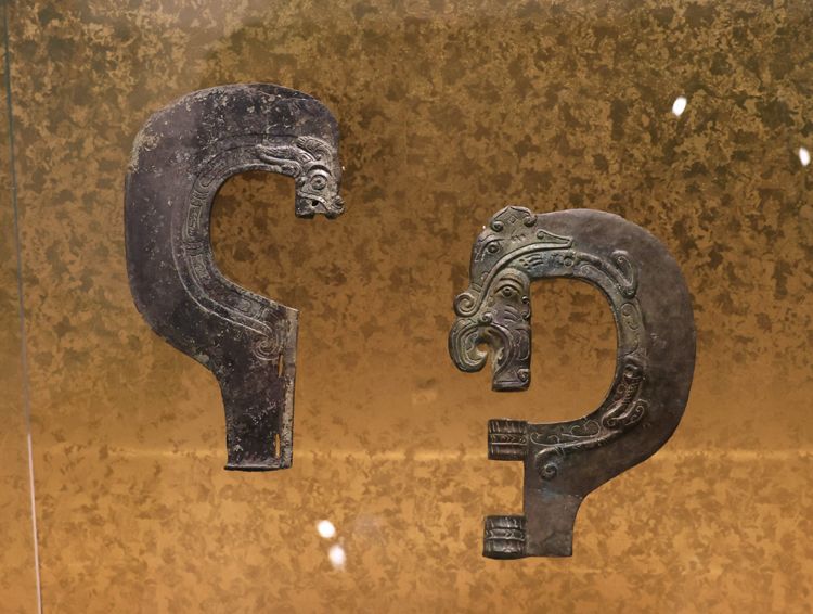 展出的两件半环形钺。该展览持续至2025年1月5日。