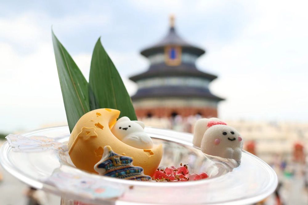 中秋假期,天坛公园将桂花元素融入到限定饮品之中,让游客市民在天坛赏月的同时,更感受到一丝舌尖的团圆味道。“玉兔桂香羹”将桂花冻饮品与冰淇淋月饼搭配在一起,透明Q弹的桂花冻散发着淡淡的桂花香,仿佛把整个秋天都装进了盘里。