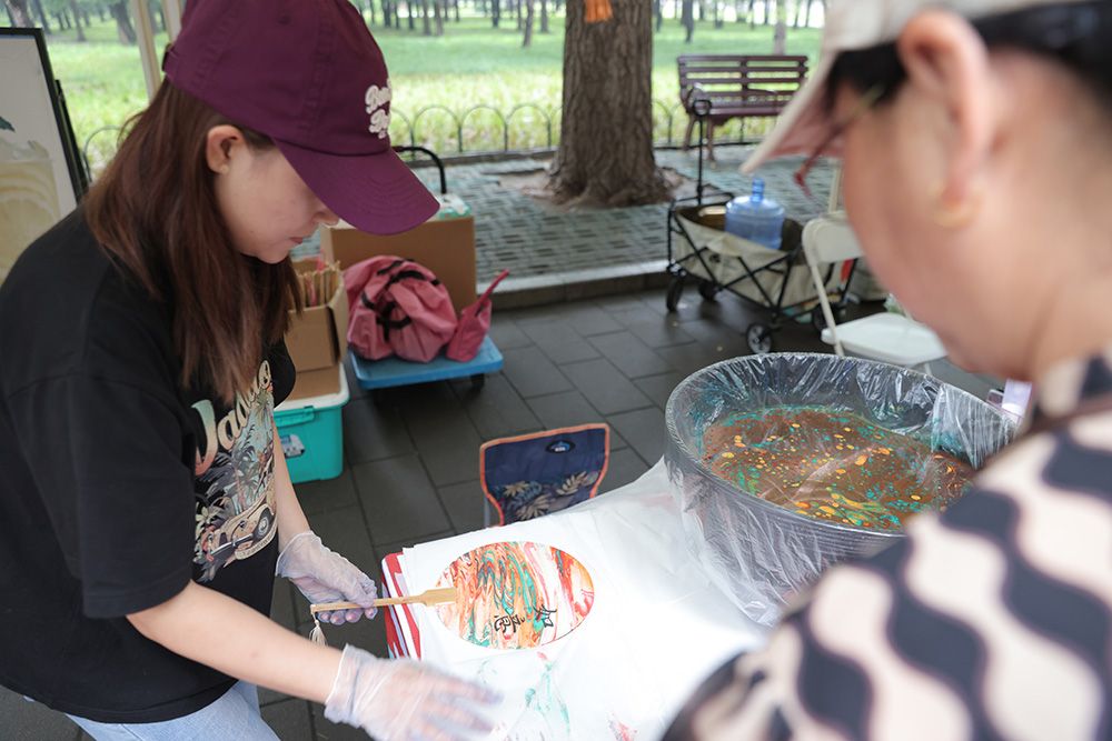 今年“中秋”假期,天坛公园将开展多场科普文化活动,举办传统文化和互动体验相结合的“月满中秋 天坛雅集”特色夜市,推出多款限定饮品,全天候、多方式陪伴游客市民乐享中秋假期。图为游客体验漆扇制作。