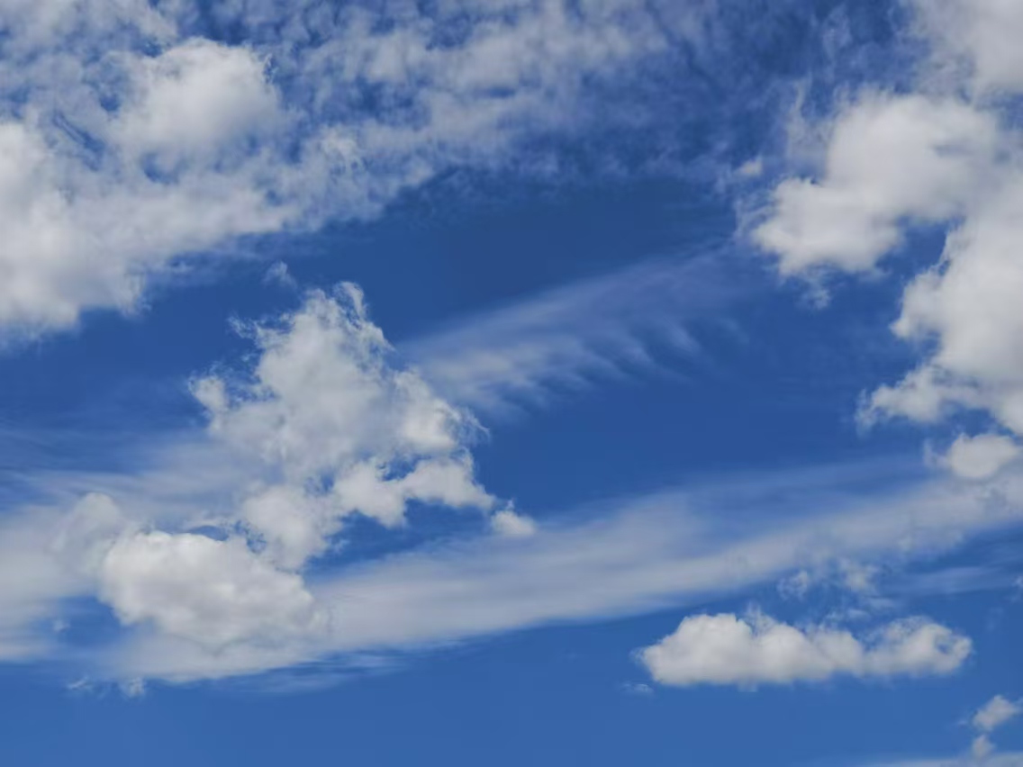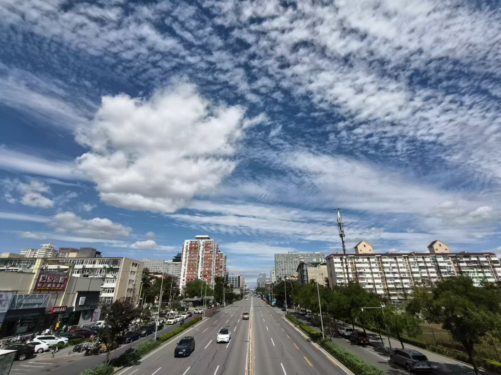 中关村南大街,白云横亘在蓝天上。