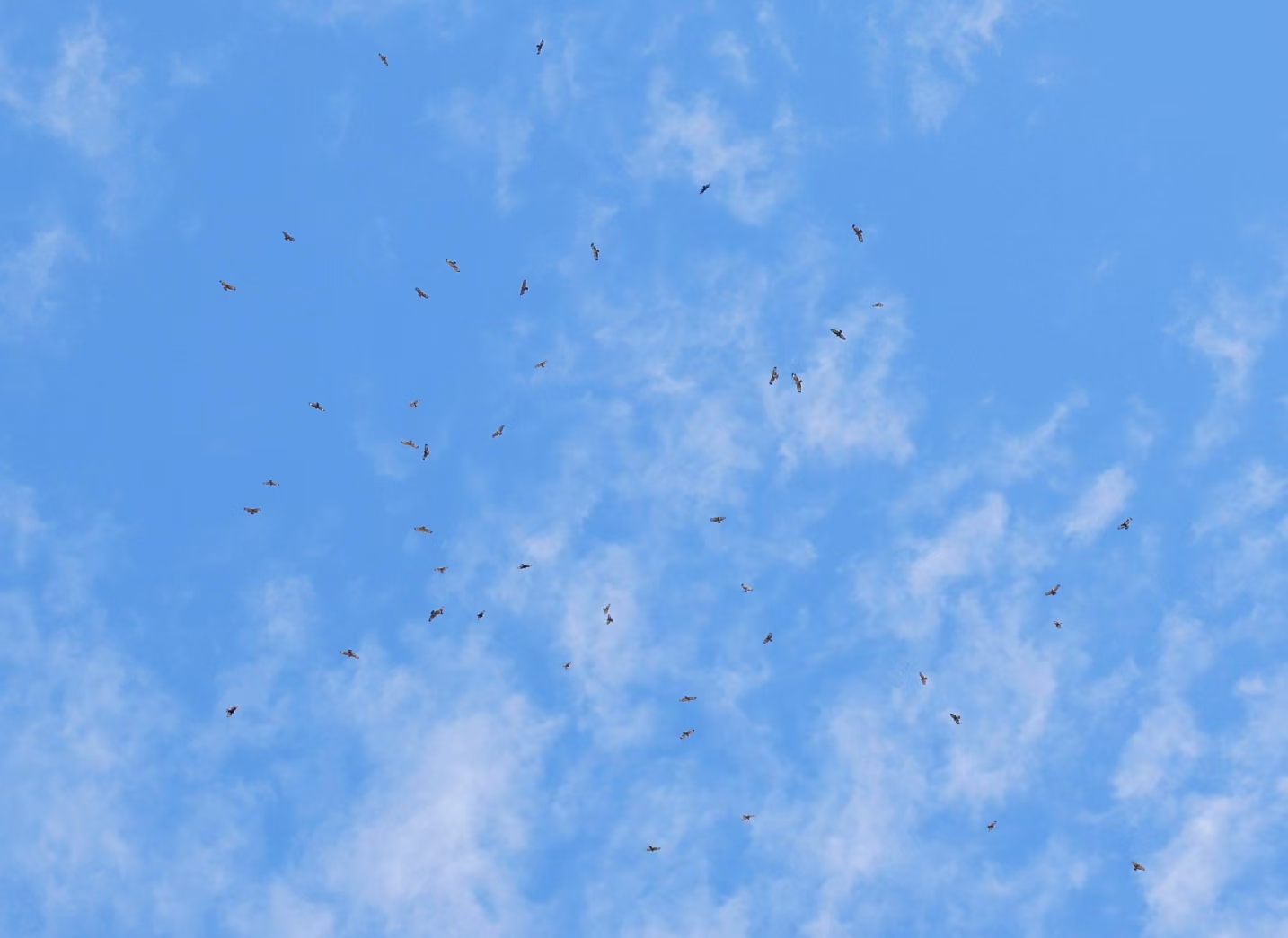 建材城西路,群鸟在高空滑翔。
