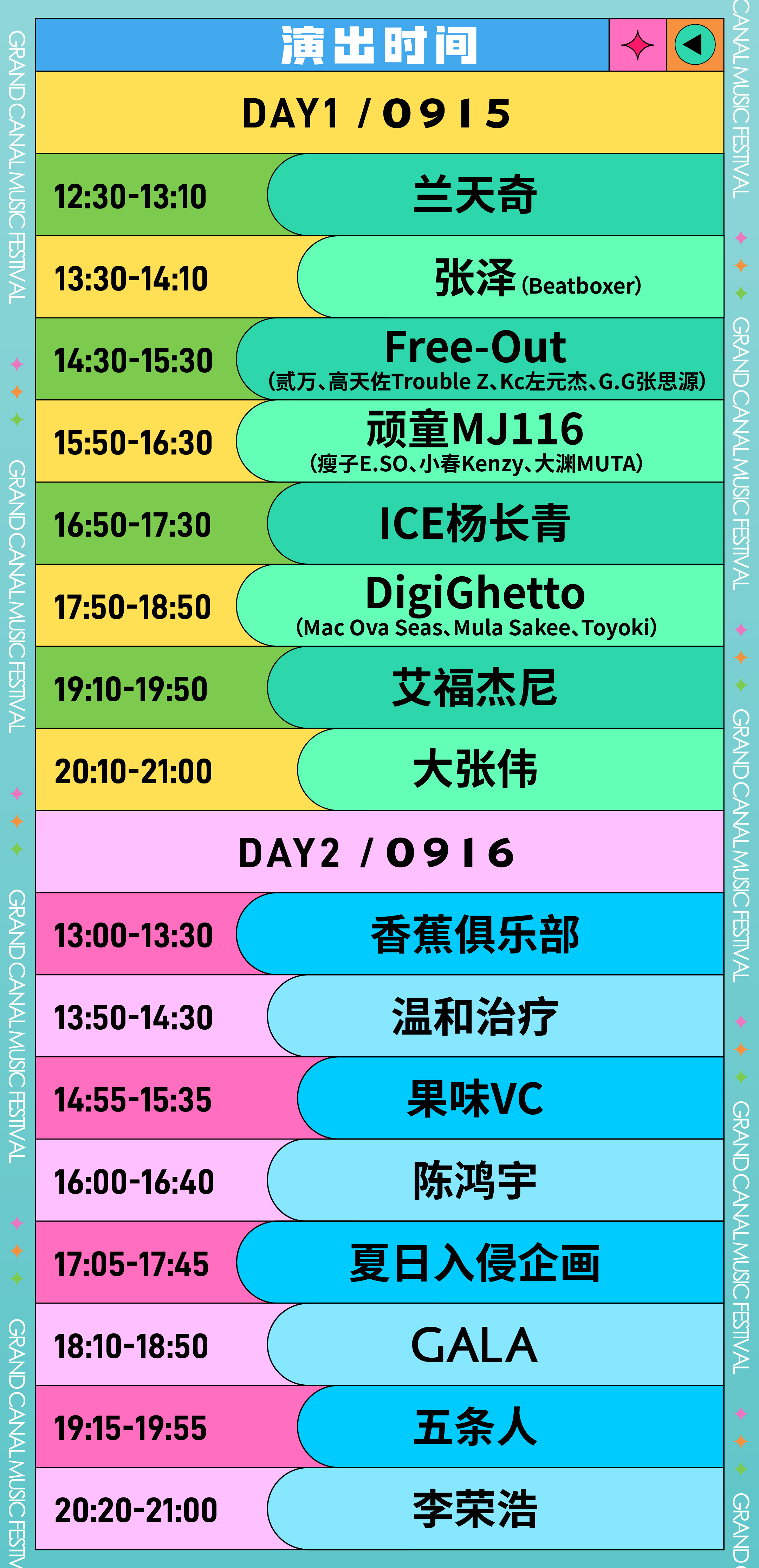 北汽极狐·2024北京大运河音乐节由北京市委宣传部和通州区委区政府指导、北京广播电视台主办,是城市副中心大运河文化旅游景区成功创建国家级5A级旅游景区之后首个以“大运河”为主题的音乐嘉年华活动。9月16日,还将有李荣浩、五条人、GALA、夏日入侵企画、陈鸿宇、果味VC、温和治疗、香蕉俱乐部等人气歌手轮番登台,纵声逐浪,与乐迷共庆欢乐中秋。