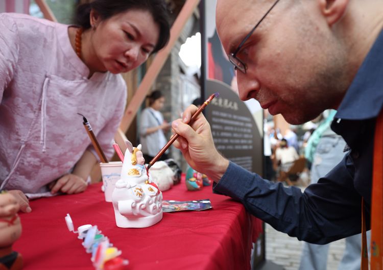9月19日,青云贰拾叁艺术中心,外国嘉宾学习画兔爷儿。