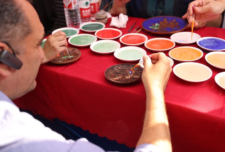 9月19日,青云贰拾叁艺术中心,外国嘉宾学习制作景泰蓝。