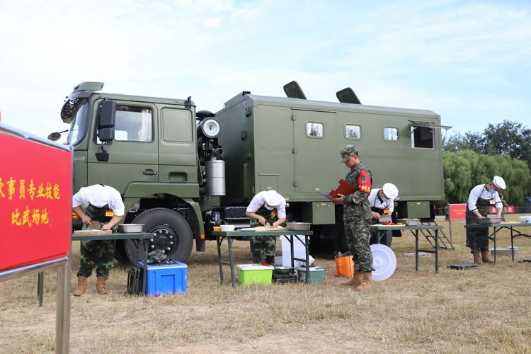 比武竞赛分综合理论和专业技能两个方面,对司务长、炊事员、军械员、驾驶员、卫生员和营房维修工等6个专业23个课目逐项考评。图为炊事员专业技能比武。
