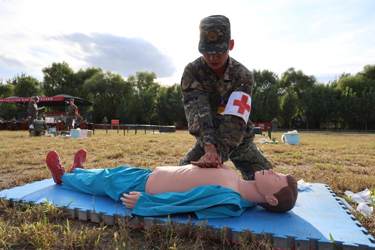 卫生员进行专业技能比武。