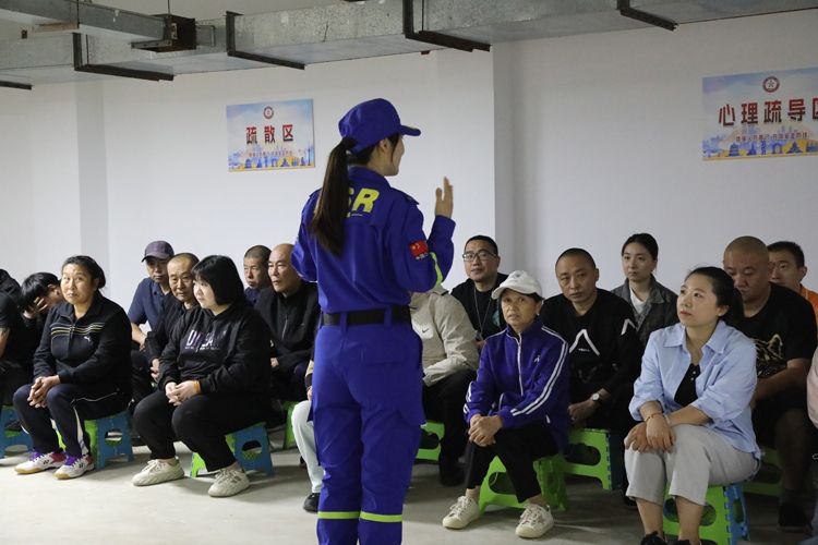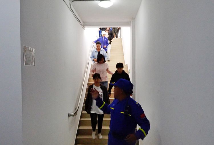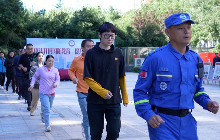 9月21日,居民有序进入地下人防设施。蓝天救援队和社区居民进行了疏散掩蔽、人防设施平战转换、物资保障、医疗救护、心理疏导等科目演练,并开展了知识问答竞赛和法制宣传活动。