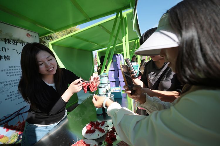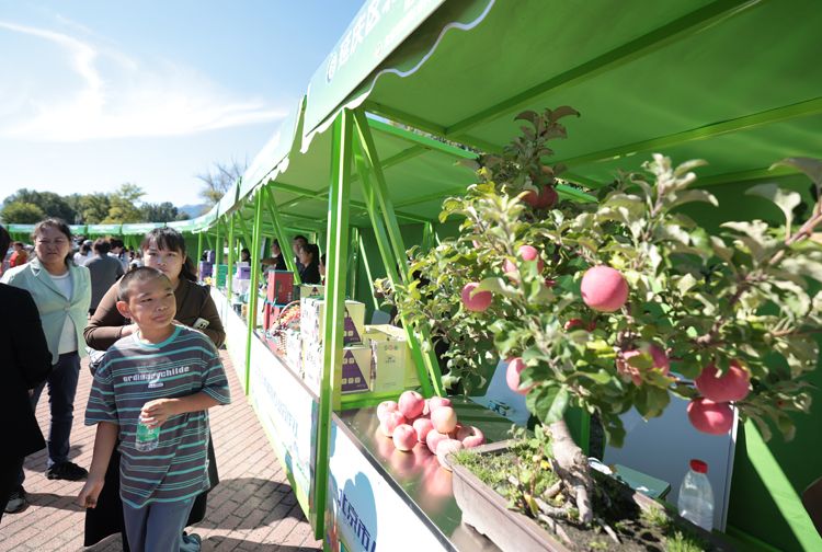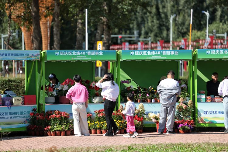 活动现场,新优花卉与延庆特色盆栽苹果等争奇斗艳,彰显延庆园林绿化产业蓬勃发展成就。