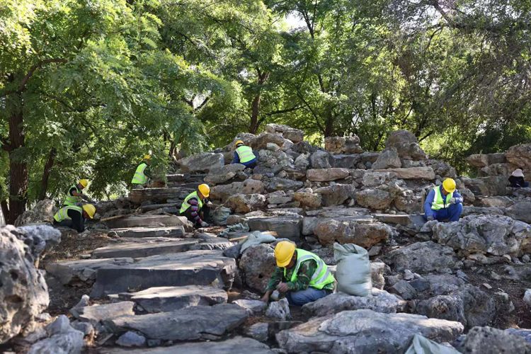 考古人员发掘假山蹬道。