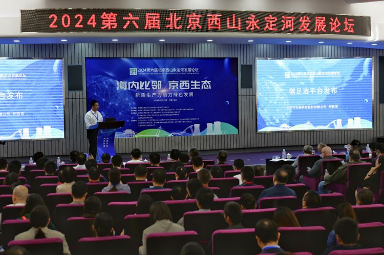 主论坛上,侯立安院士做题为《“双碳” 视域下京西地区降碳减污扩绿增长成效及对策》的主旨演讲,分析了京西地区在 “双碳” 视域下的发展成效。赵华林做题为《“双碳” 目标下绿色低碳发展》的主旨演讲,从多个方面进行分享。世界自然基金会亚太区代理总监林尚德做《携手同行,实现气候雄心,推进气候行动》的主旨演讲,介绍了世界自然基金会的贡献。图为碳足迹平台发布。