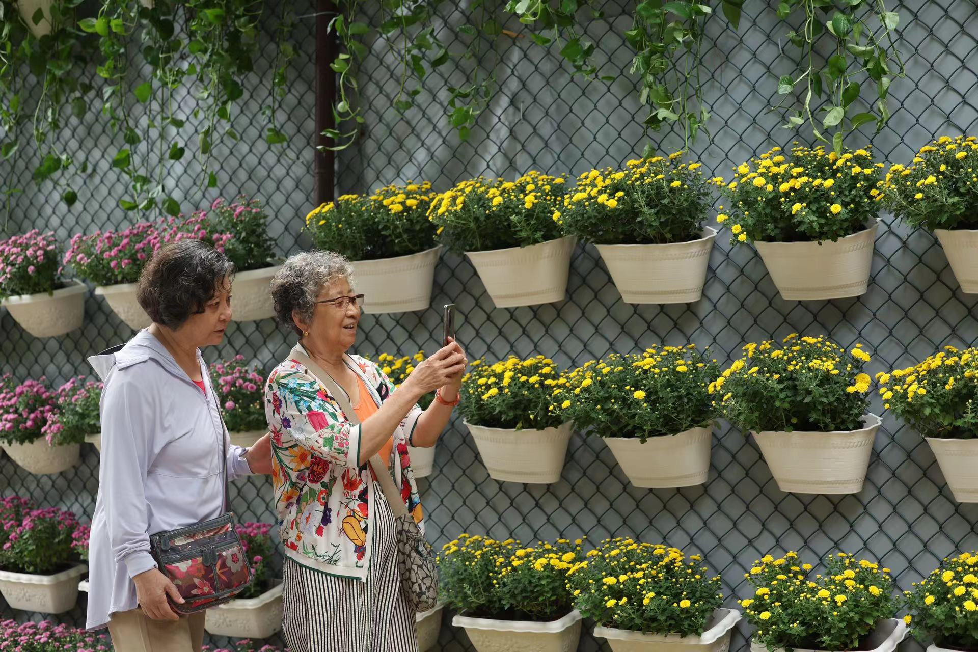 百菊、悬崖菊、七彩炫菊……9月26日,朝阳区团结湖公园“赏菊观鱼”游园会开幕。为期12天的游园会覆盖整个国庆假期,菊花展将持续至10月底。