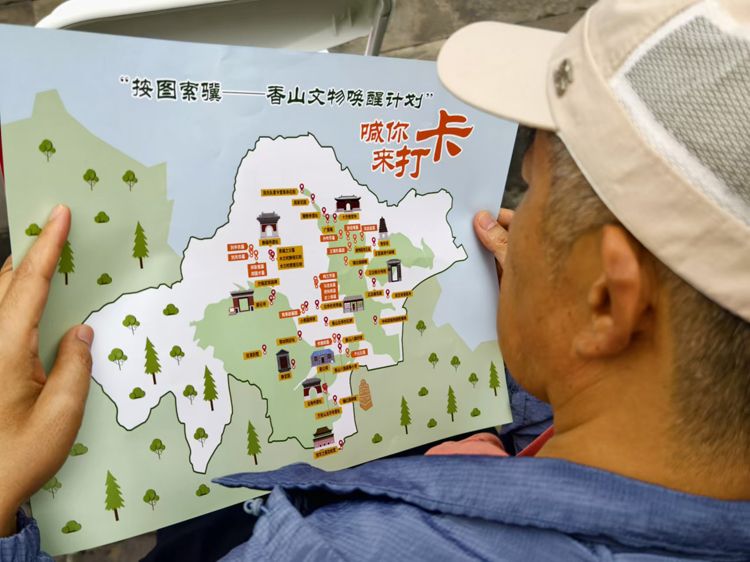 活动以精心绘制的文物地图为引领,带着参与者们漫步在香山团城演武厅的各个角落。地图不仅详细标注了香山地区的48处在册文物,还巧妙地串联起了隐藏其中的文化秘密。