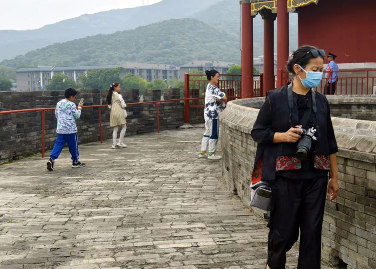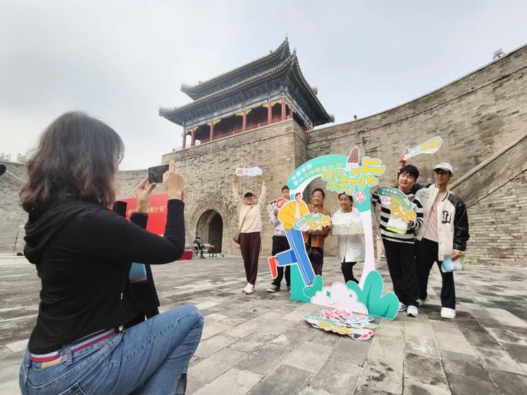 9月27日,海淀区香山街道在团城演武厅举办了 “按图索骥 —— 香山文物唤醒计划” 首场活动,吸引了众多市民热情参与。图为市民在团城演武厅打卡留影。