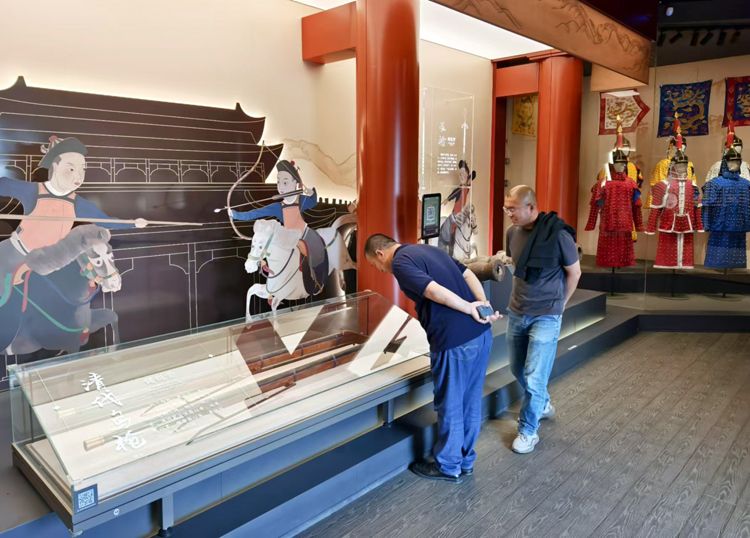 市民在城楼上参观。团城演武厅是清朝皇帝训练及检阅八旗军士的场所,始建于清乾隆十四年(1749年),是北京仅存的一组别具特色的城池式武备建筑。