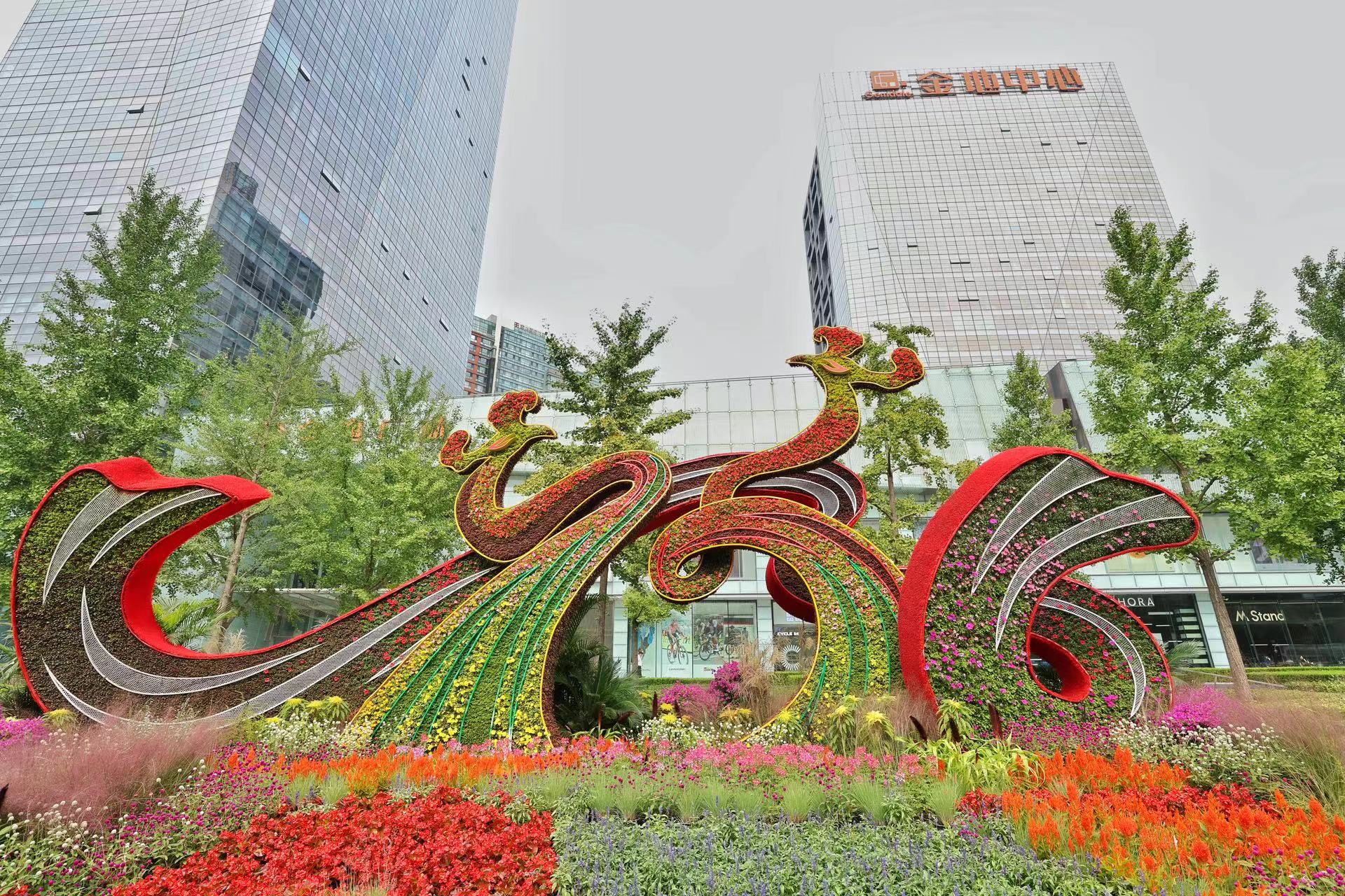 东长安街沿线金地中心前的立体花坛。新京报记者 王飞 摄