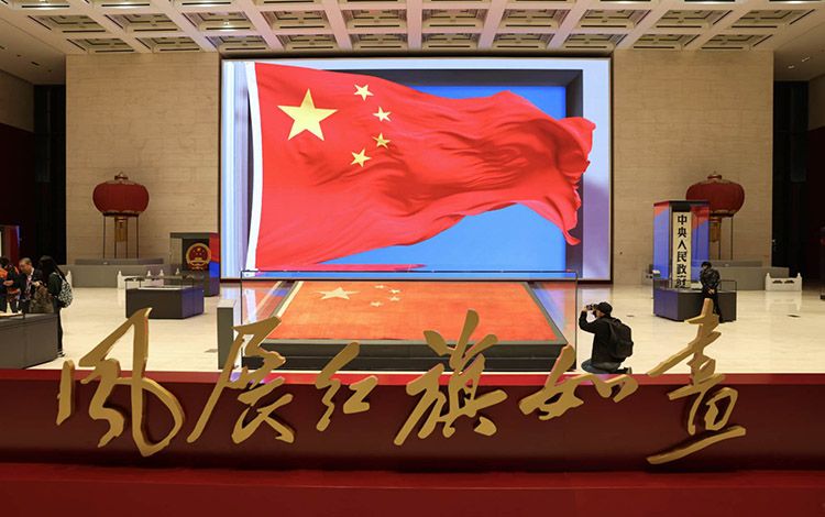 本次展览系统展示中国国家博物馆馆藏革命年代的红旗、新中国成立后的五星红旗和党旗、革命题材经典美术作品等红色文物60余件,以及100张新时代以国旗为主题的高清照片,并首次辅以裸眼3D动态展示国旗,展现五星红旗的诞生过程和新时代国旗飘扬在祖国大好河山的壮美场景。