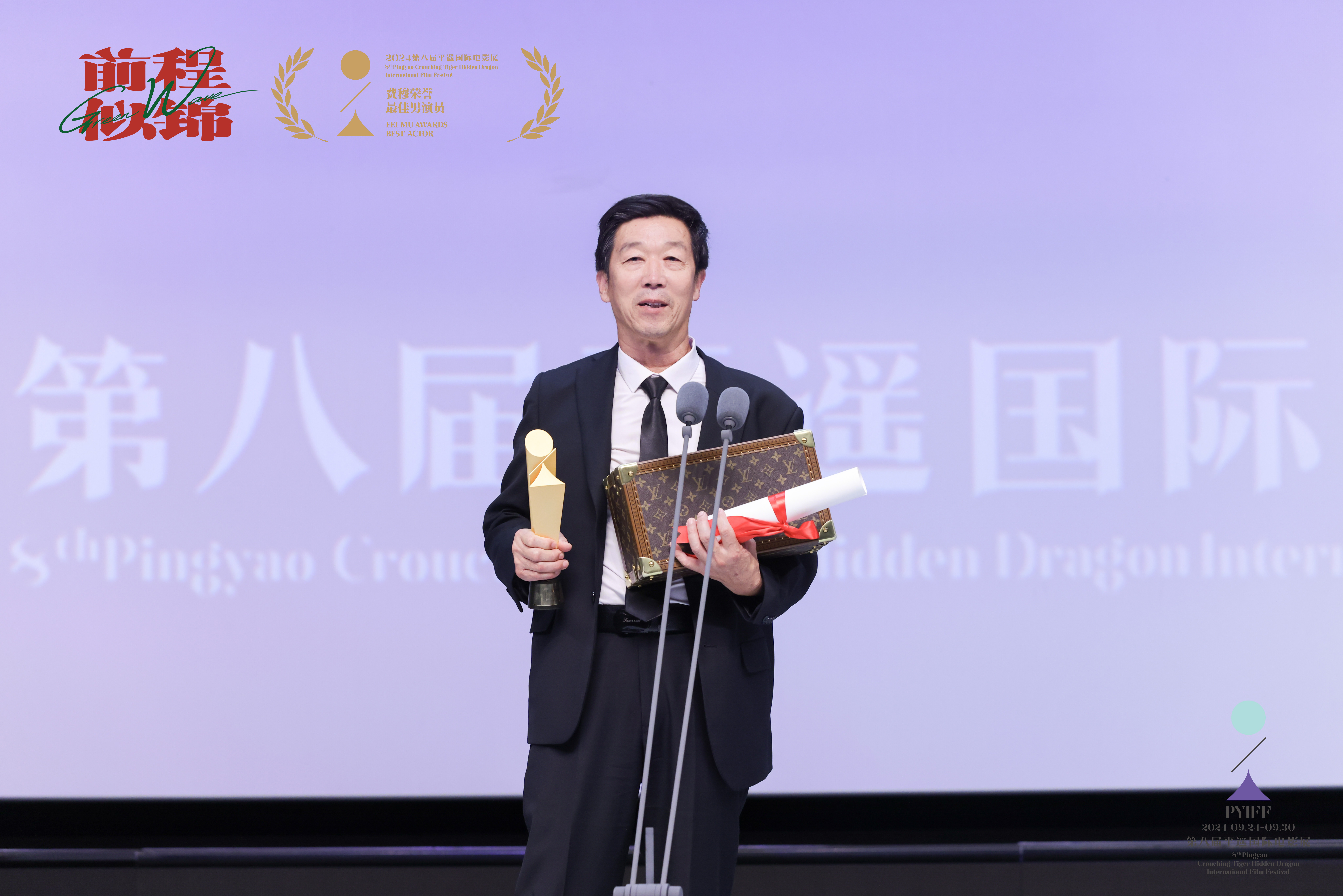 新京报讯(记者周慧晓婉)由徐磊导演,王传君、徐朝英领衔主演,张占义、孙阳、赵小东主演,祁又一特别出演,魏书钧、康春雷友情出演,张苗担任出品人及总制片人的喜剧电影《前程似锦》,近日亮相第8届平遥国际电影展全球首映,不仅以4.2的高分位列“藏龙”单元媒体场刊评分榜首,同时导演徐磊、演员徐朝英这对现实生活中的真父子还双双圆梦平遥、先后登上领奖台,斩获了费穆荣誉·评审荣誉、费穆荣誉·最佳男演员大奖。影片同期发布了平遥特别海报,一对父与子在星光与祥云间同乘一辆电动小车,奔赴属于他们的跌宕前程。