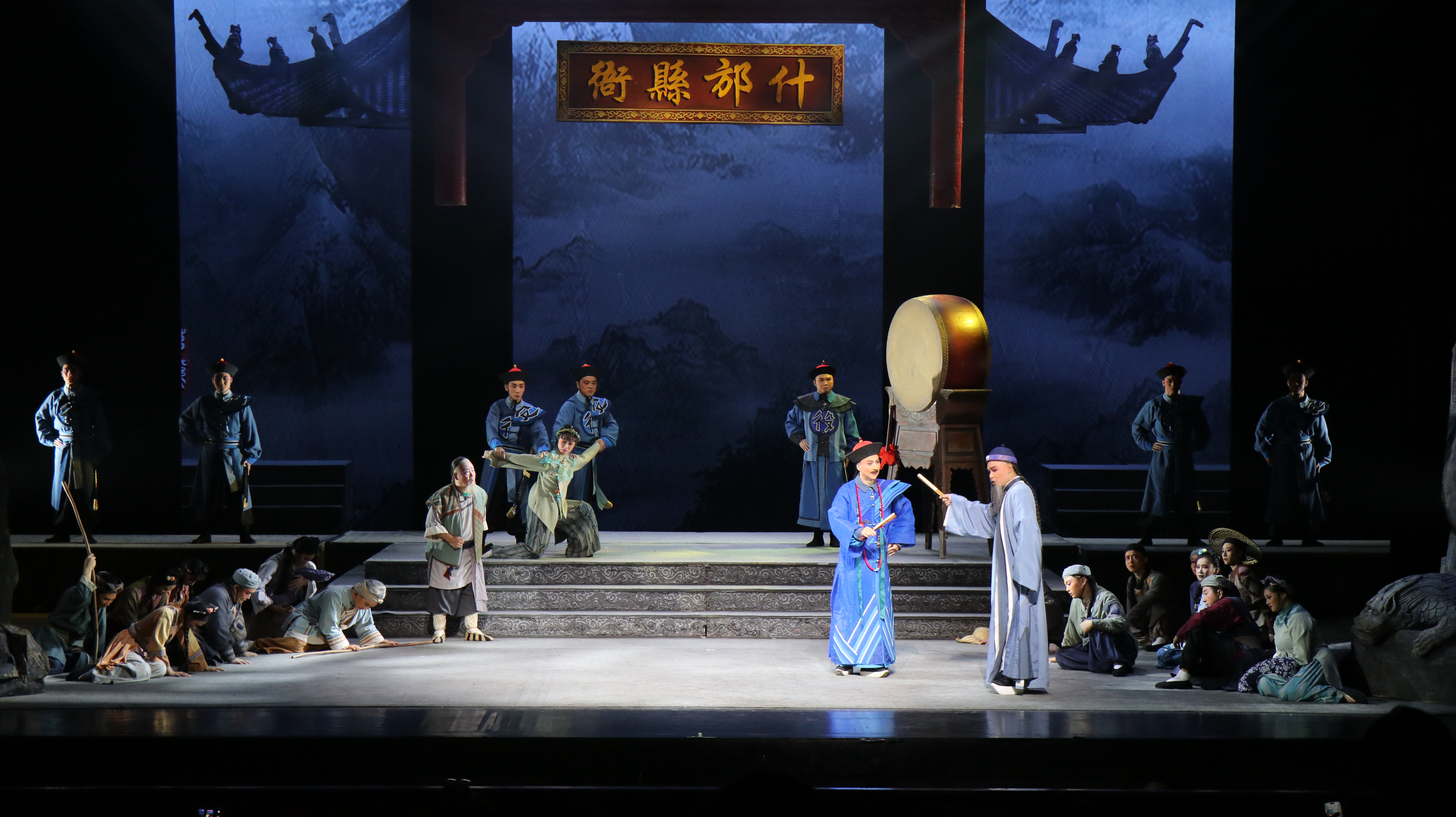 当日19时30分,京演·民族文化艺术宫大剧院内,座无虚席,随着灯光渐暗,音乐渐起,一层缥缈幽深的水墨帘幕缓缓落下,《草鞋县令》在京演出拉开序幕。该剧由四川艺术职业学院、四川省川剧院、陈智林川剧技能大师工作室、中共什邡市委市政府联合出品的《草鞋县令》,以根治什邡水旱为主线,讲述了清朝嘉庆年间什邡县令纪大奎,面对灾情从容不迫、坚守本心、排除万难,最终解决民生难题的故事。宏大鲜明的时代主题、真切感人的剧情演绎搭配悠扬婉转的蜀韵唱腔和瑰丽奇绝的舞美设计,为北京戏迷观众们演绎了一场“脱官靴,换草鞋,修身为民”的四川好故事。