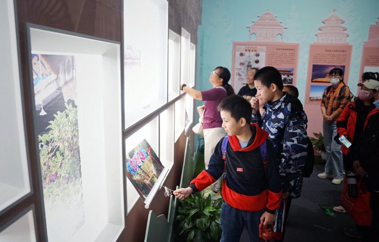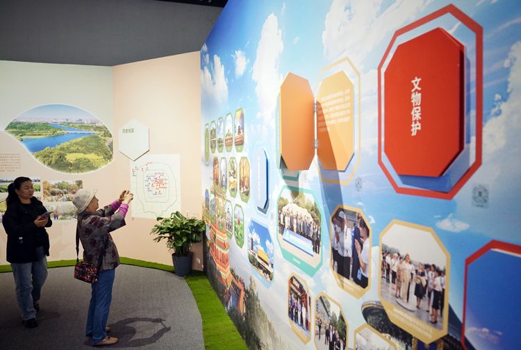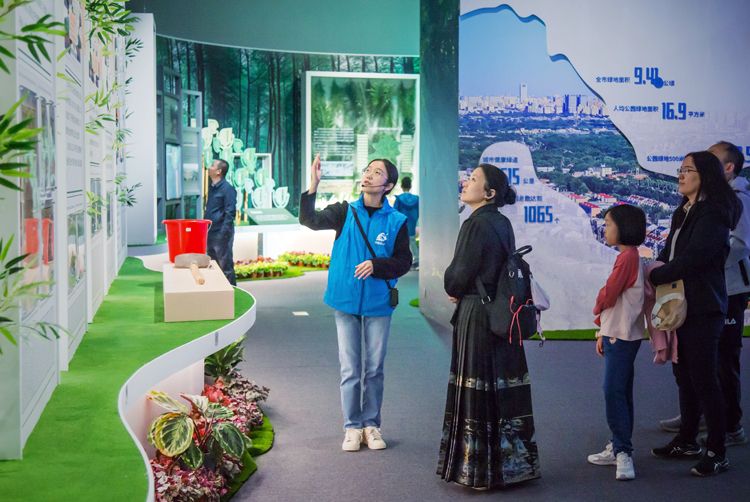 10月2日,中国园林博物馆,讲解员带着游客参观“绿满京华 美美与共——首都园林绿化75年成就展”。为庆祝中华人民共和国成立75周年,全面呈现首都园林绿化事业发展中的重大历史事件和成果,由北京市园林绿化局主办,中国园林博物馆和北京市园林绿化宣传中心共同承办的“绿满京华 美美与共——首都园林绿化75年成就展”面向市民游客开放参观。