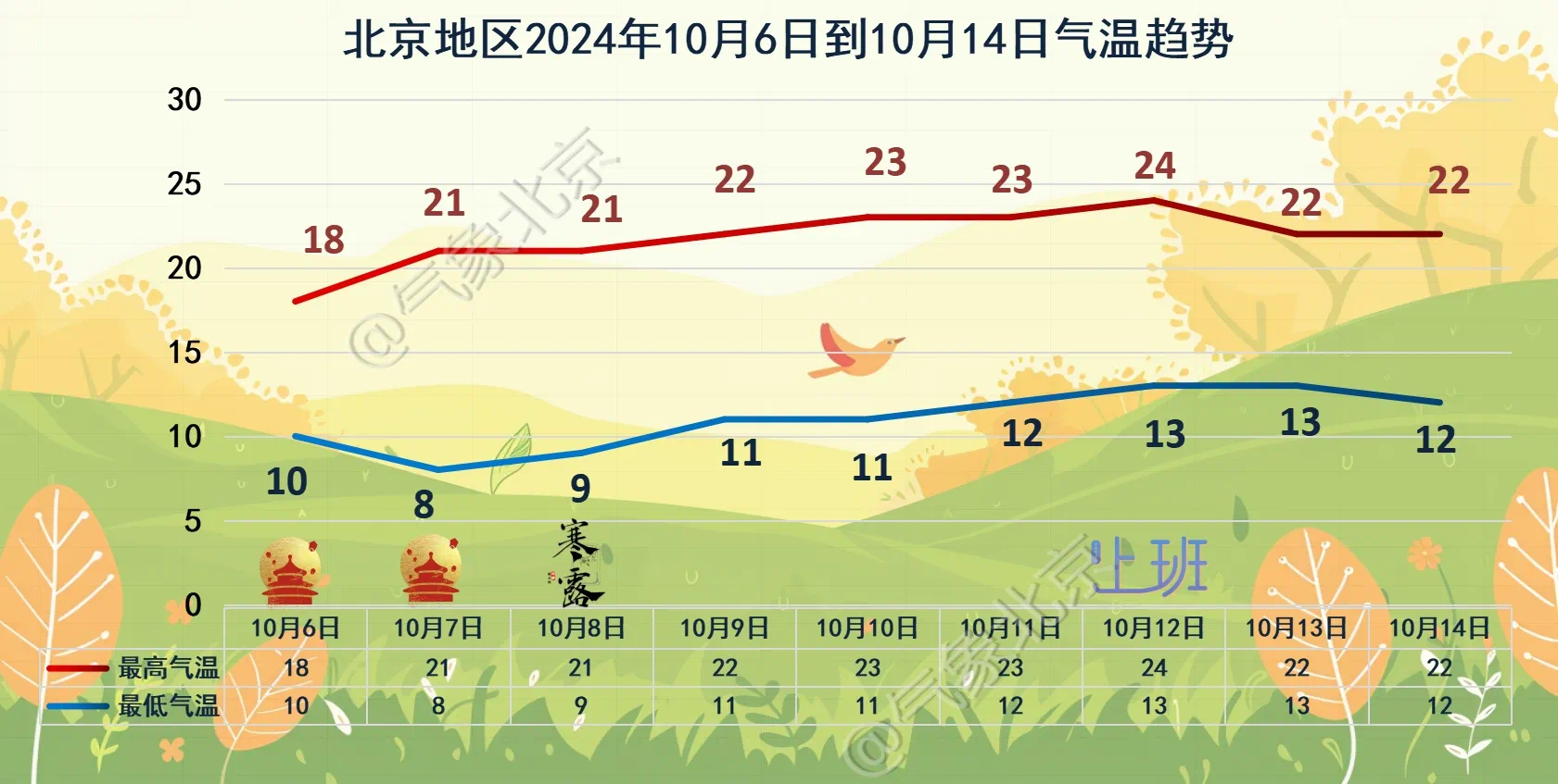 北京地区10月6日至14日气温趋势。北京市气象局供图