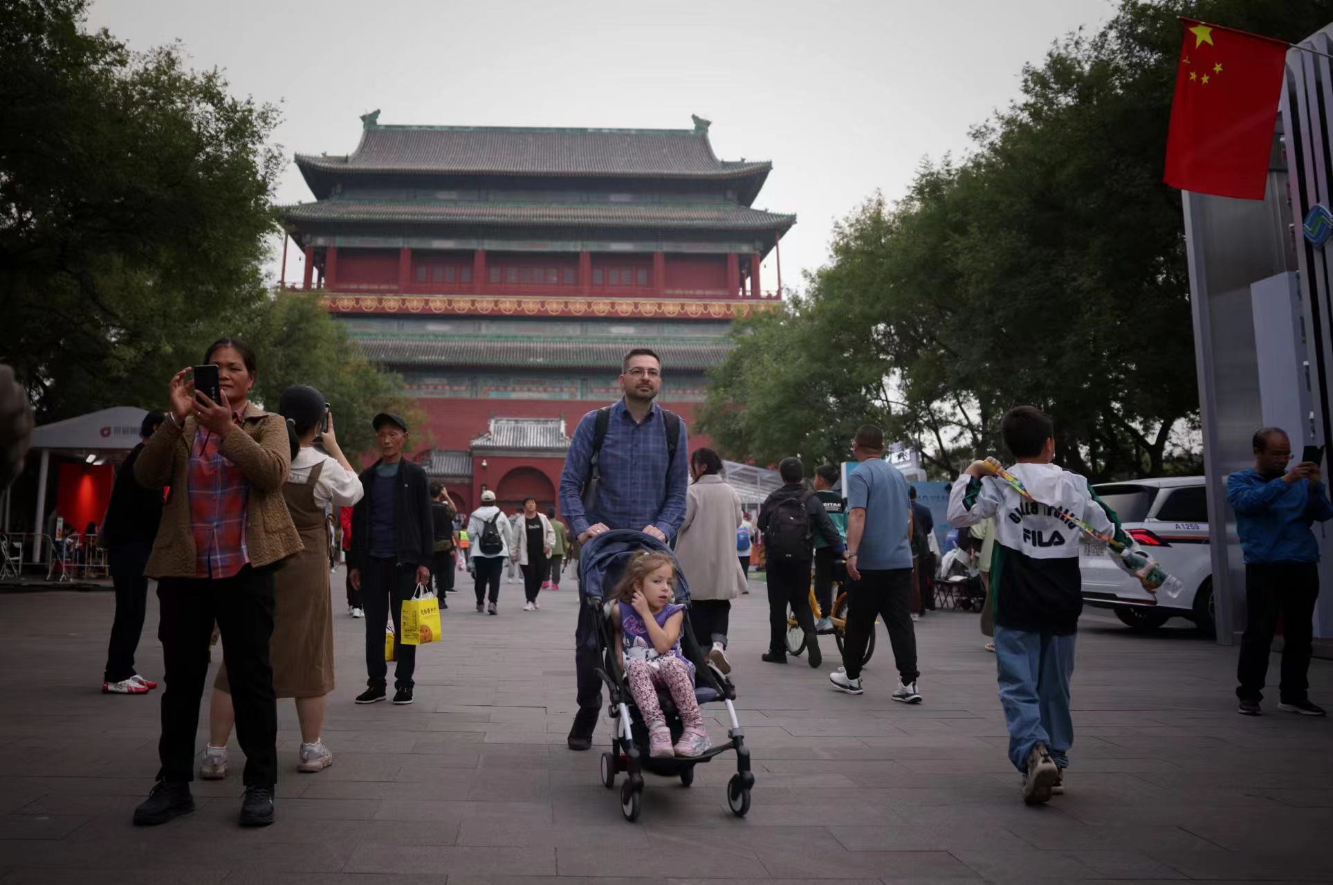 每年国庆,钟鼓楼都会吸引不少中外游客前来。
