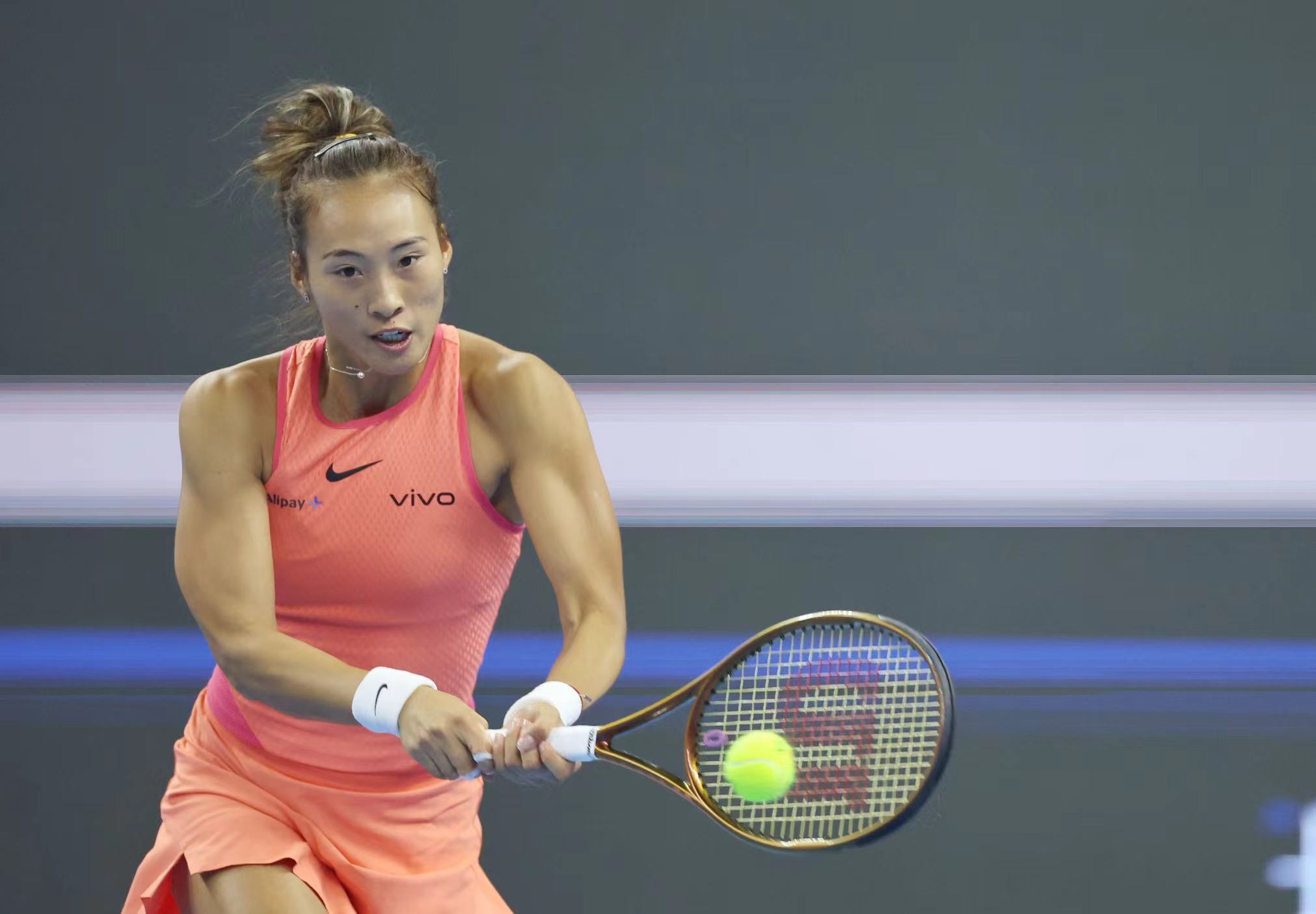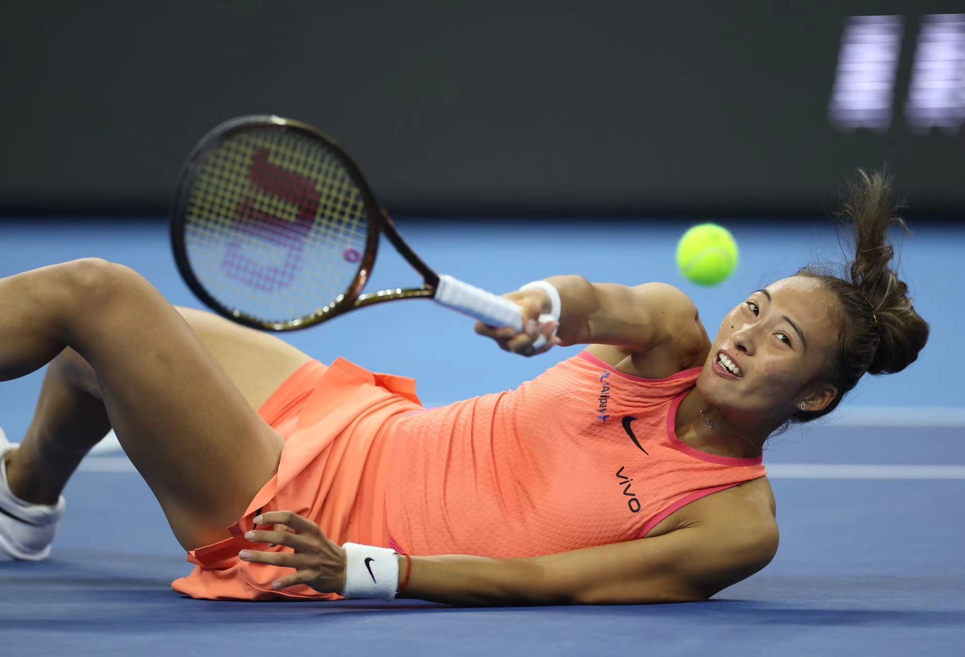 比赛中的郑钦文。