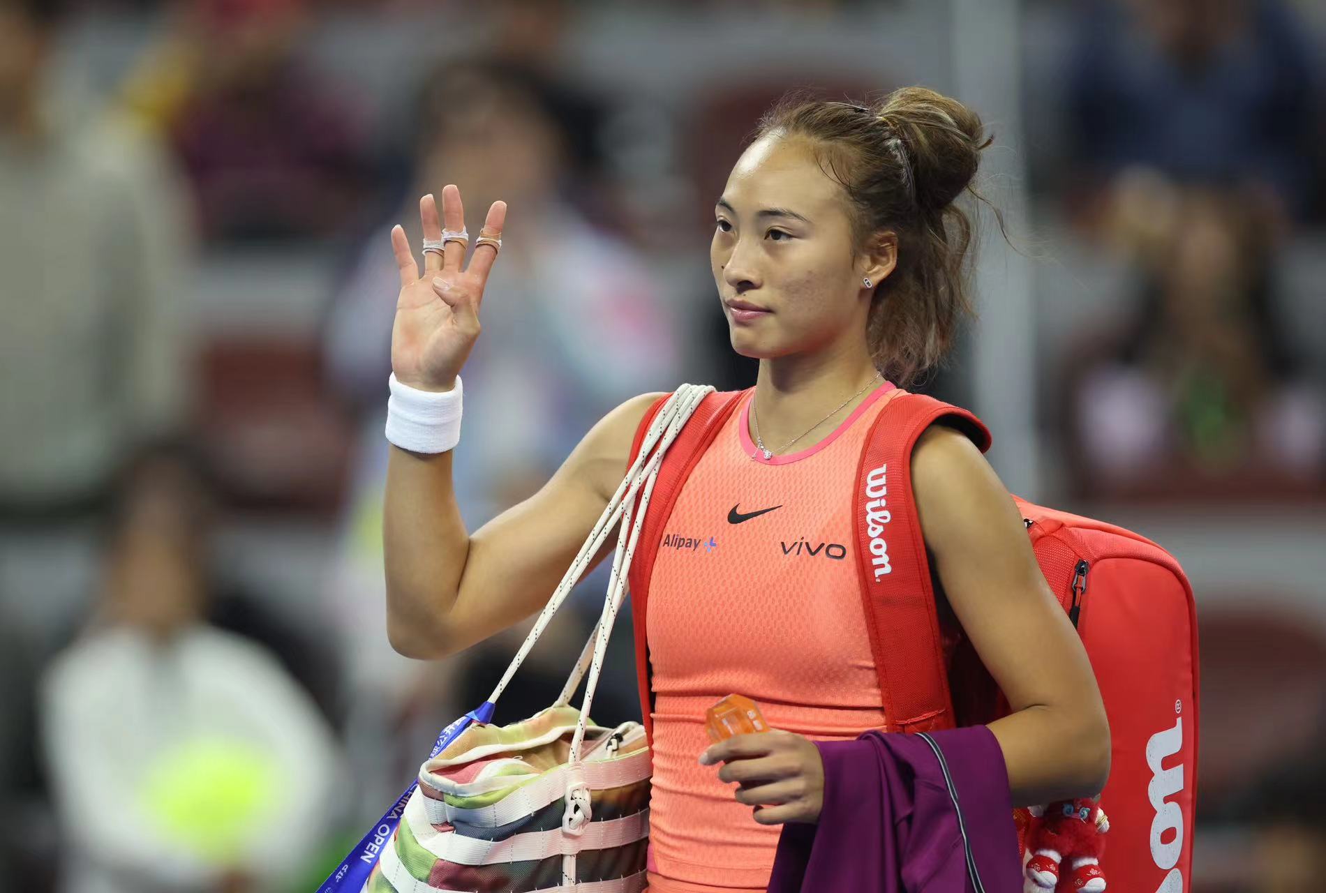 郑钦文向观众挥手致谢。
