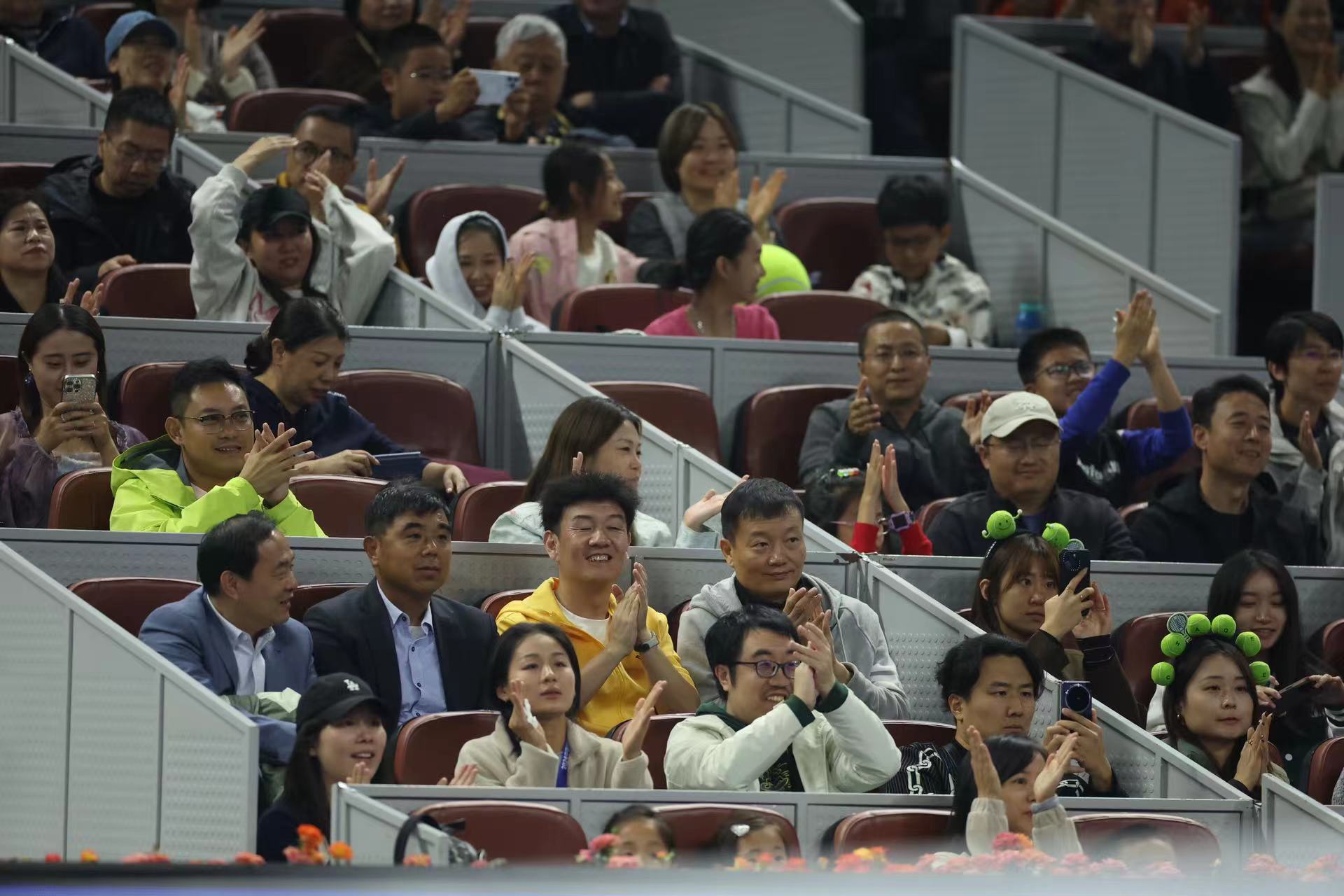 现场观众为郑钦文加油。