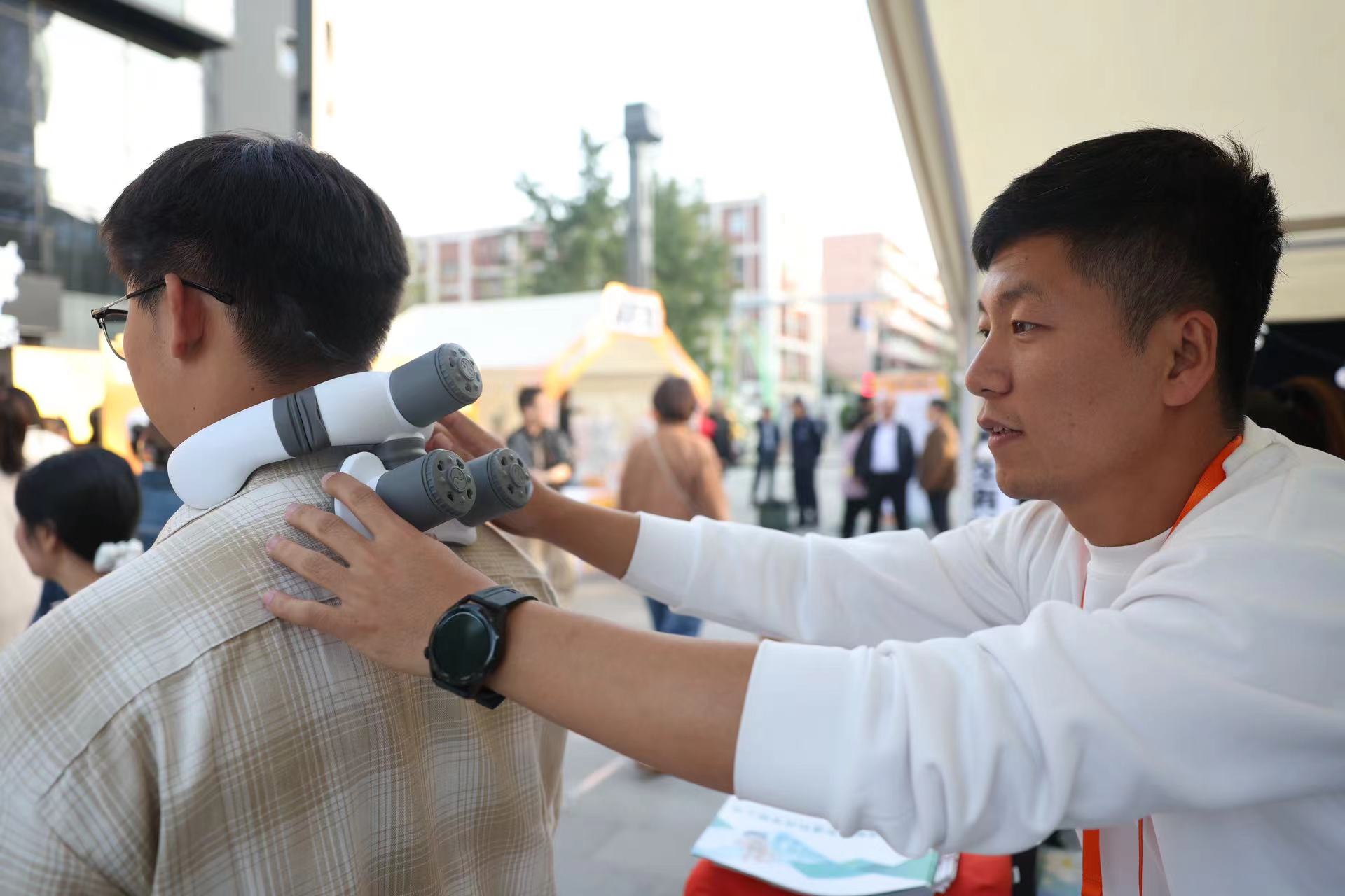 现场市民体验颈灸。