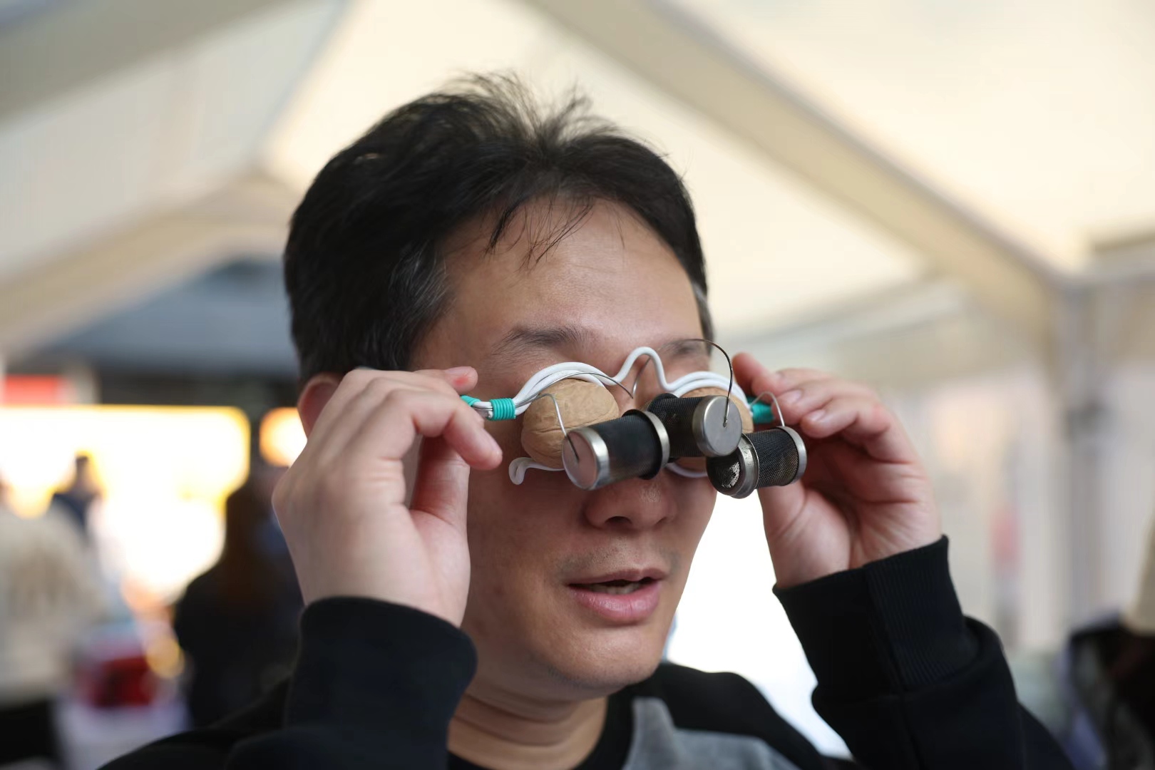 市民体验核桃灸。