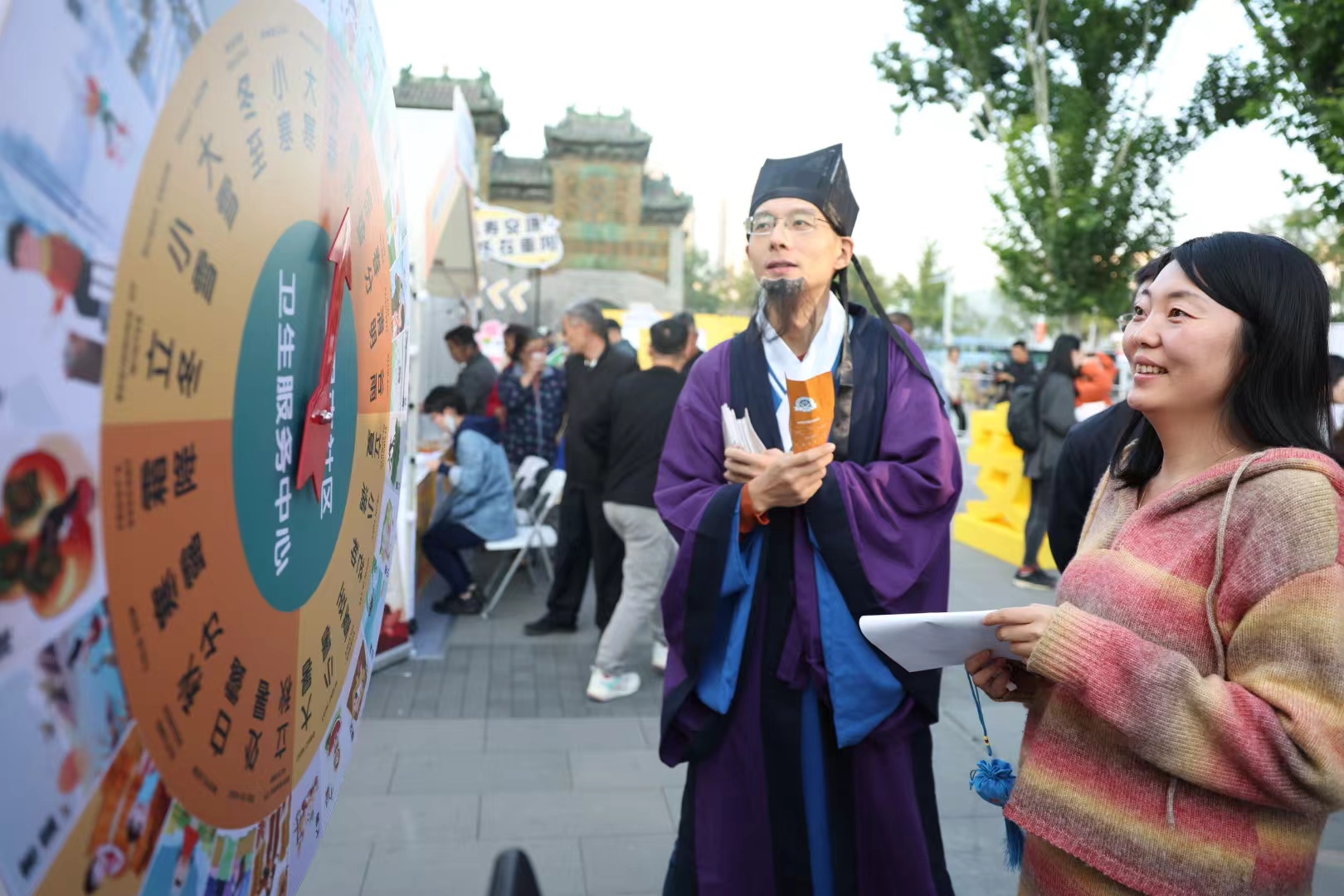 市民进行轮盘中医药科普问答活动。