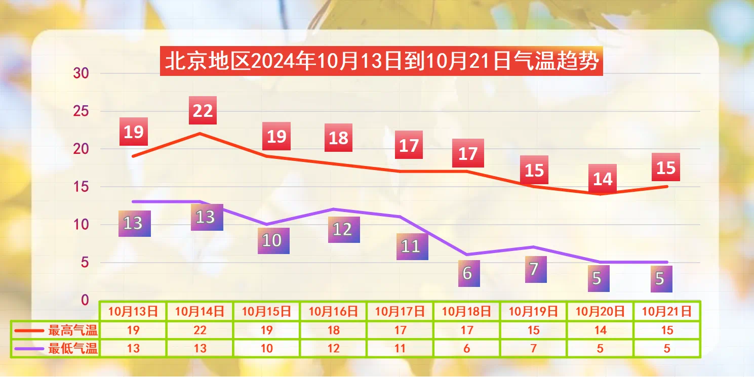 下周白天最高气温在22℃至14℃,夜间最低气温在13℃至5℃,气温整体逐步走低。